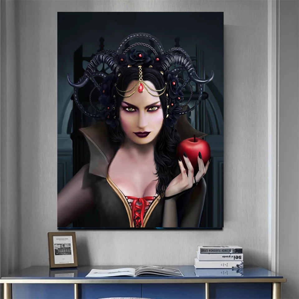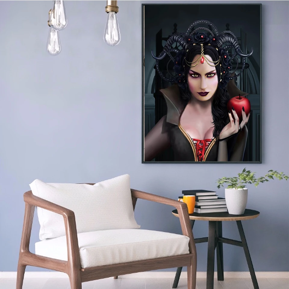 Полная дрель круглая картина iamond зловещая королева вампира 5D Готическая вышивка Алмазная вышивка крестиком красное яблоко украшение для дома искусство