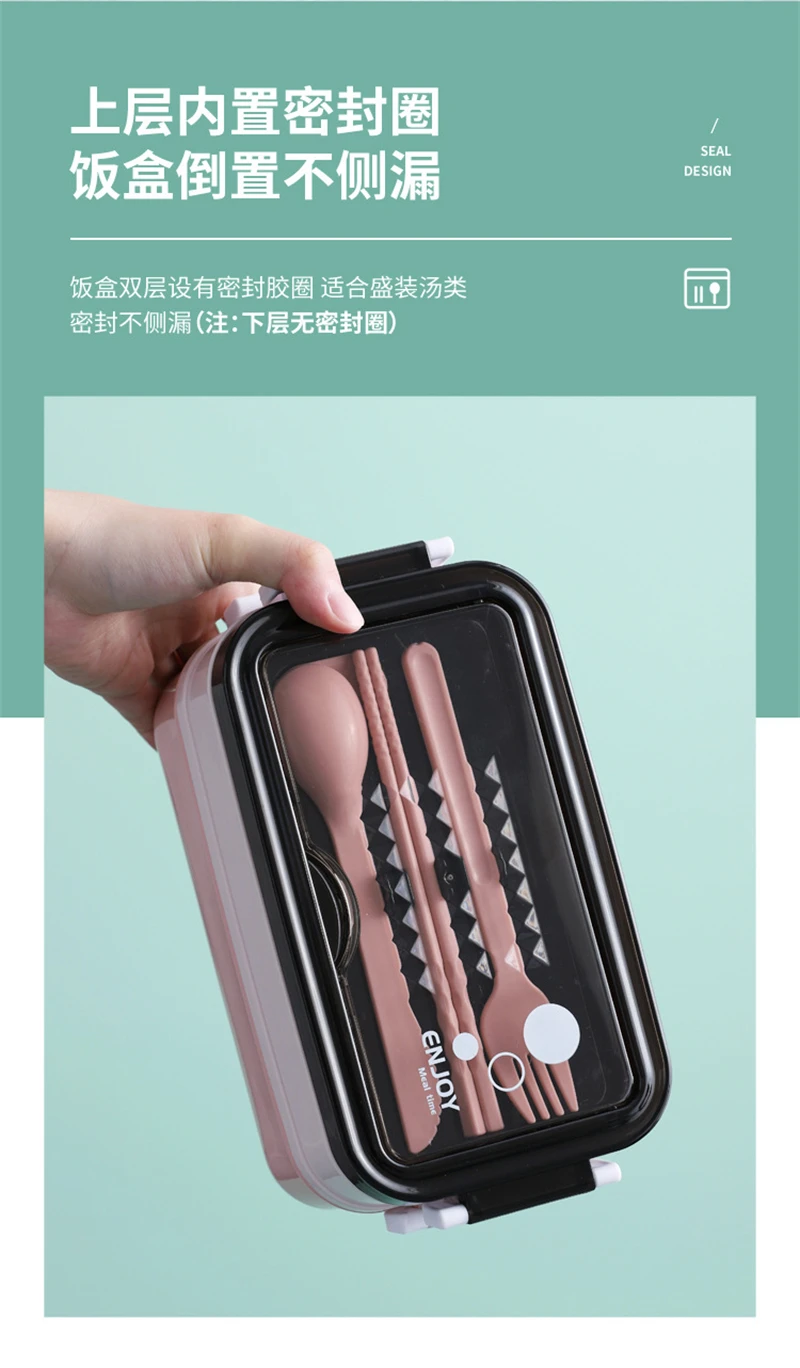 Верхний слой имеет встроенное уплотнительное резиновое кольцо, так что суп не легко протекает. (На нижнем слое нет уплотнительного резинового кольца)