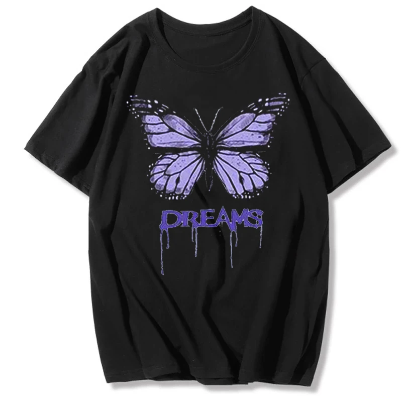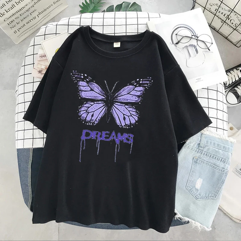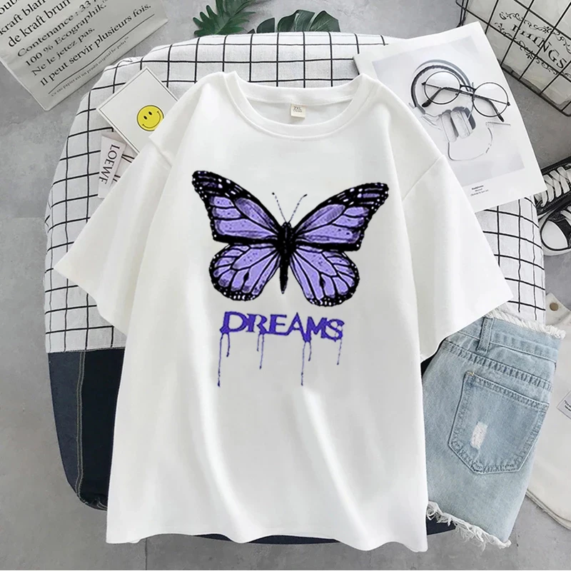 Женская футболка с принтом в виде бабочки, летняя свободная футболка в уличном стиле, одежда в стиле Харадзюку, Y2K