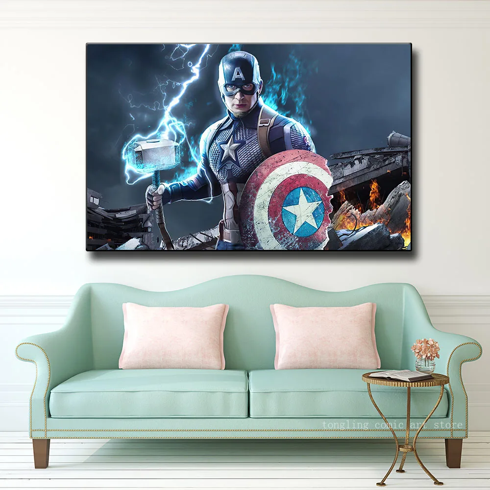 Картина из серии Капитан Америка, Мстители, супергерой Marvel, постер на холсте с высоким разрешением, картина для украшения гостиной