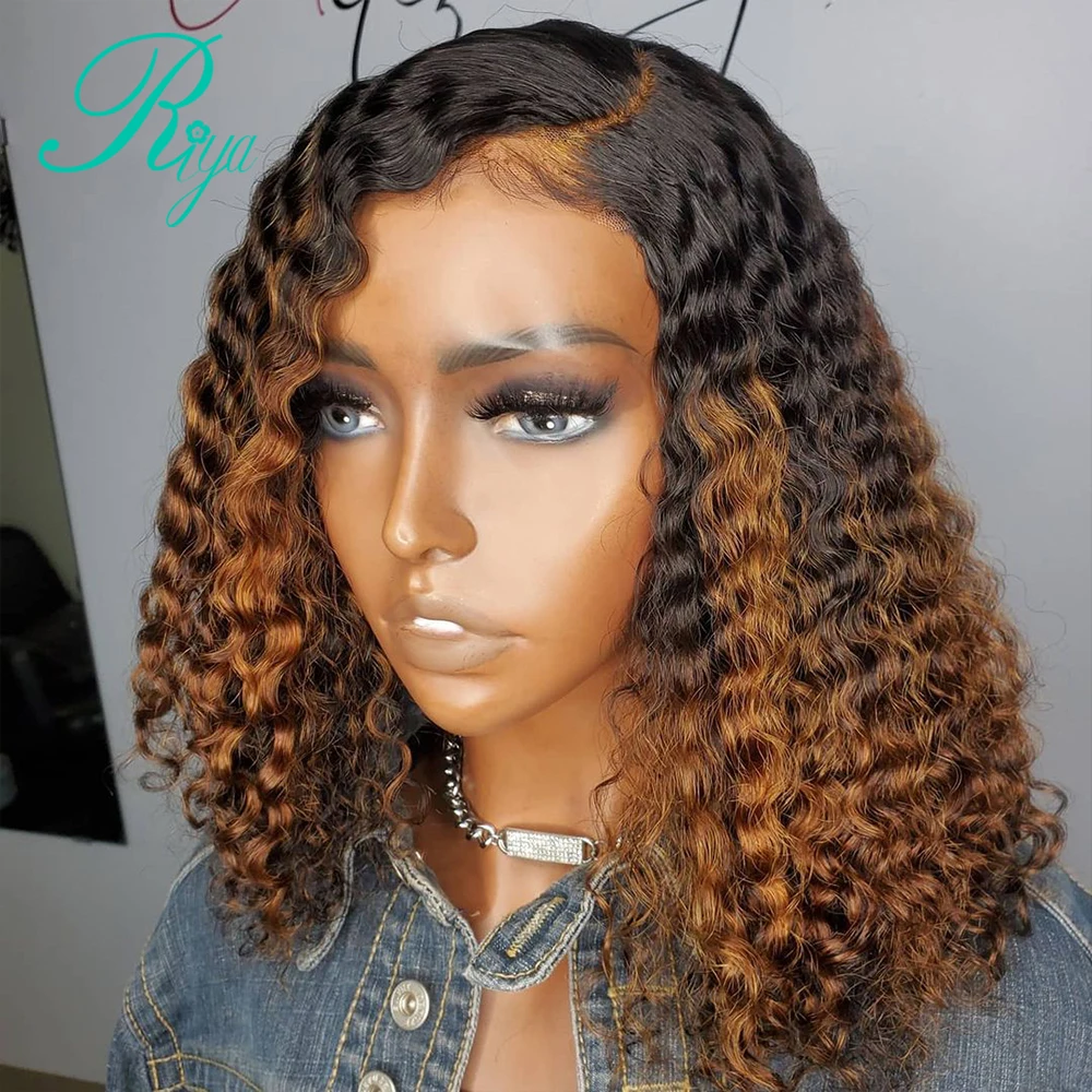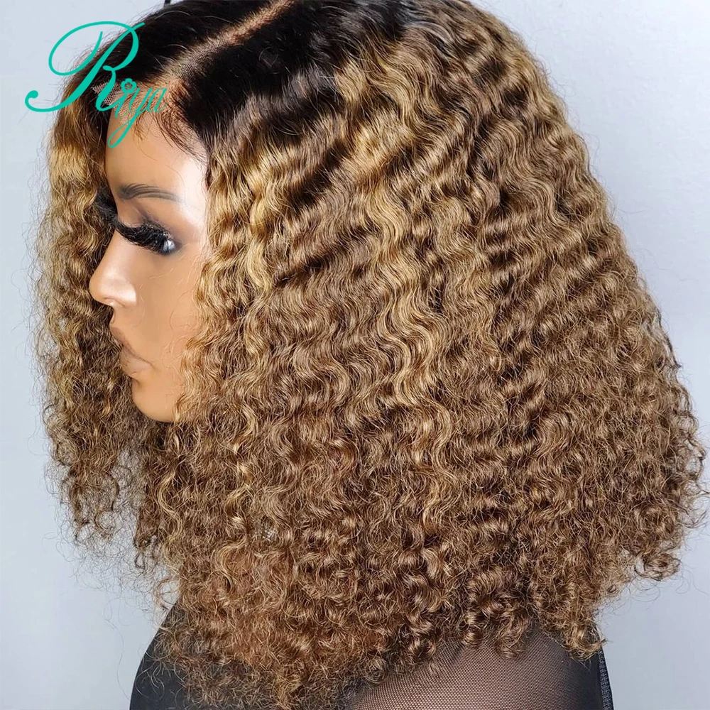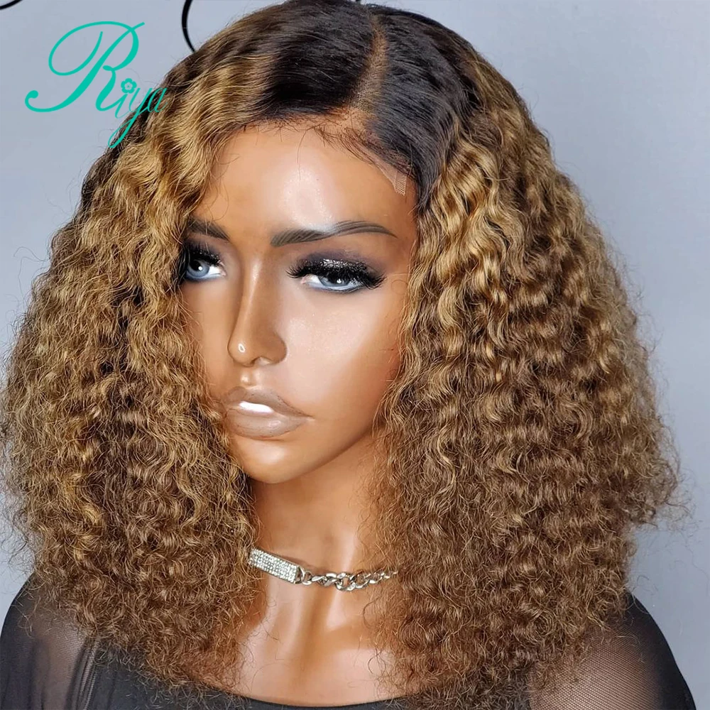 Медовый светлый Омбре 30 цветов волшебный короткий Джерри кудрявый Боб резка прозрачный Невидимый 4X4 кружевной застежки передние человеческие волосы парики Remy