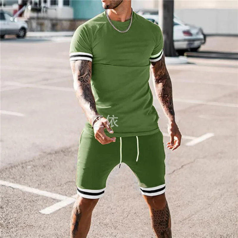 2021 новый летний Для мужчин комплекты Повседневное короткий рукав спортивные костюмы Для Мужчин's спортивная одежда в стиле пэчворк в полоску спортивный костюм мужской Jooger Slim Fit наборы для ухода за кожей