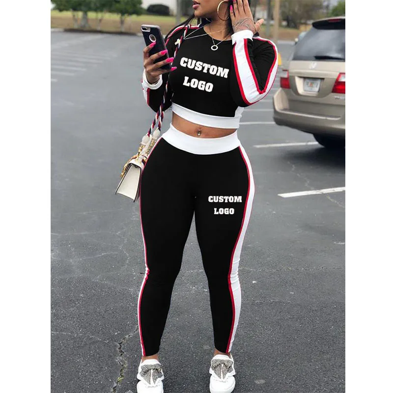 Спортивный костюм, спортивная одежда с вашим логотипом, комплект из 2 предметов, сексуальный женский короткий топ с рукавами и штаны, одежда для тренировок, тренажерного зала, фитнеса, Спортивная женская одежда
