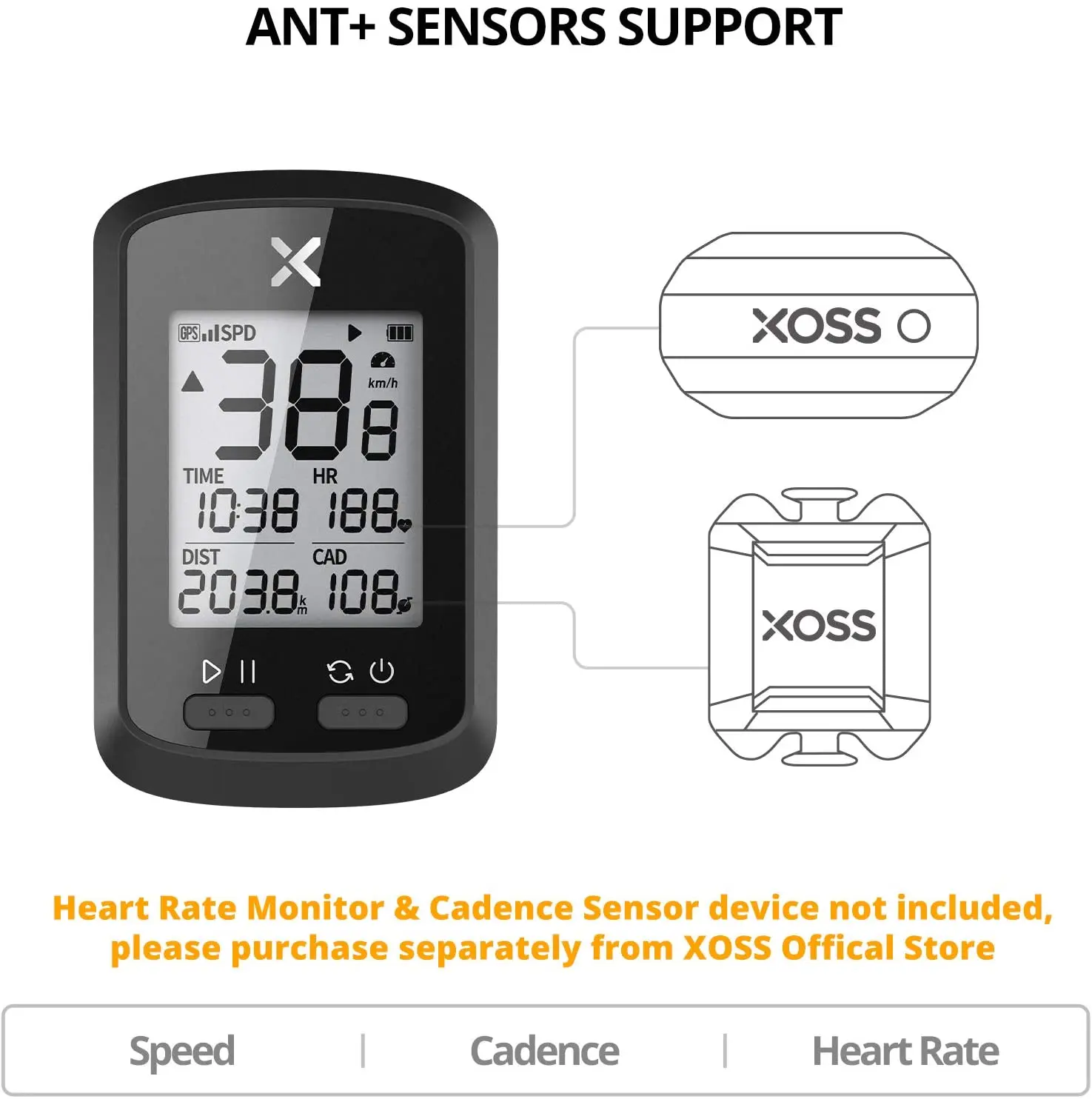 Велосипедный компьютер XOSS G Plus, беспроводной GPS Спидометр, водонепроницаемый шоссейный велосипед, горный велосипед, Bluetooth ANT +, компьютер для велоспорта с измерением частоты вращения педалей
