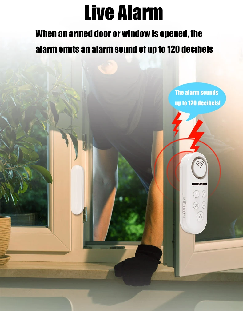 Характеристики:1. Интеллектуальная сигнализация на дверь и окно, когда дверь открывается, защита от двери и окна будет немедленно оповещаться.2. Новая функция пароля, будильник пускового механизма должен быть удален паролем, нет необходимости беспокоиться о том, что он будет удален вручную.