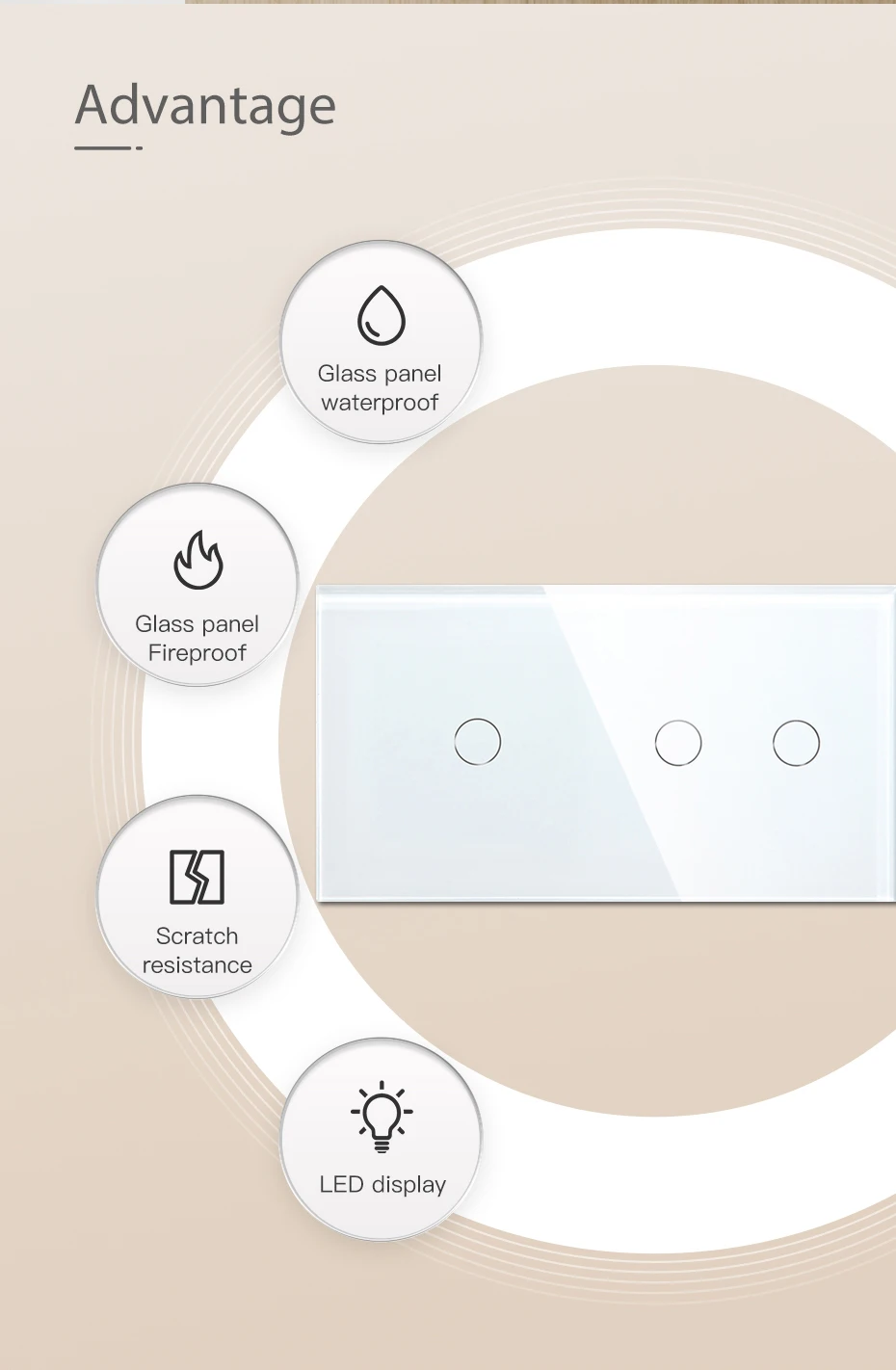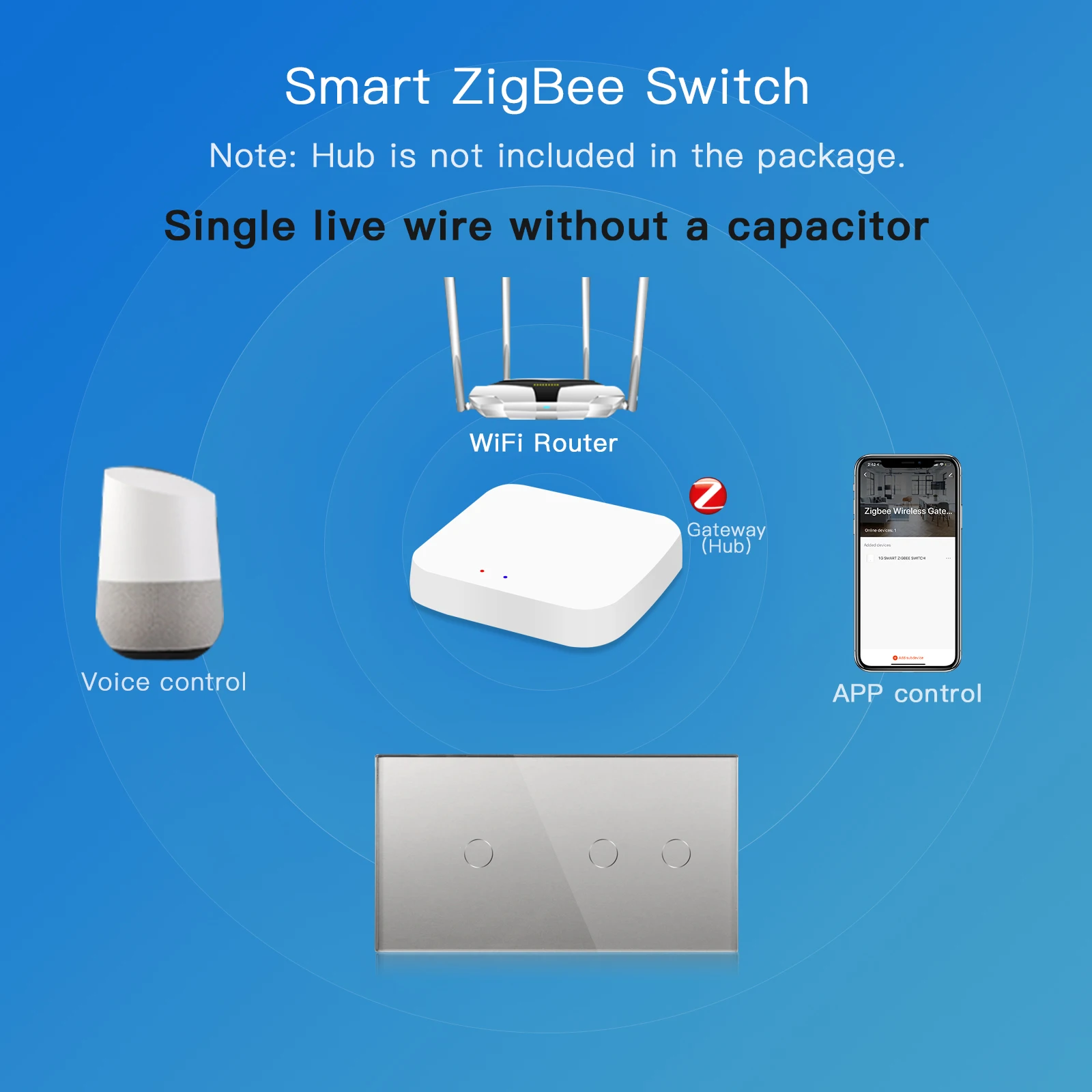 Сенсорный переключатель Bseed Zigbee 3,0, 3 клавиши, Google Home, смарт-жизнь, приложение Alexa, беспроводной переключатель, панель из хрустального стекла, переключатель Без нейтрального цвета, 10 А