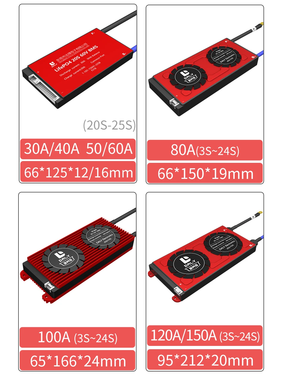 Балансировка DALY 8S 12S 16S 24S 32S BMS 100A 120A 150 200A 250A 300A Smart BMS с Bluetooth BT UART 24 в 36 в 48 в 72 в 96 в LiFePO4