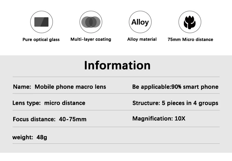 10X макрообъектив камеры телефона Универсальный объектив для iPhone...