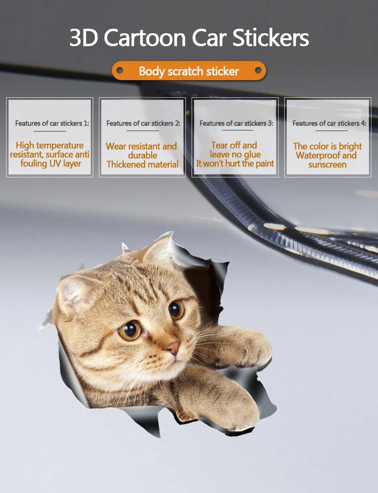 Персонализированные автомобильные наклейки мультфильм 3D чехол с рисунком кошки с защитой от царапин чехол реалистичные наклейки автомобильные экстерьер аксессуары