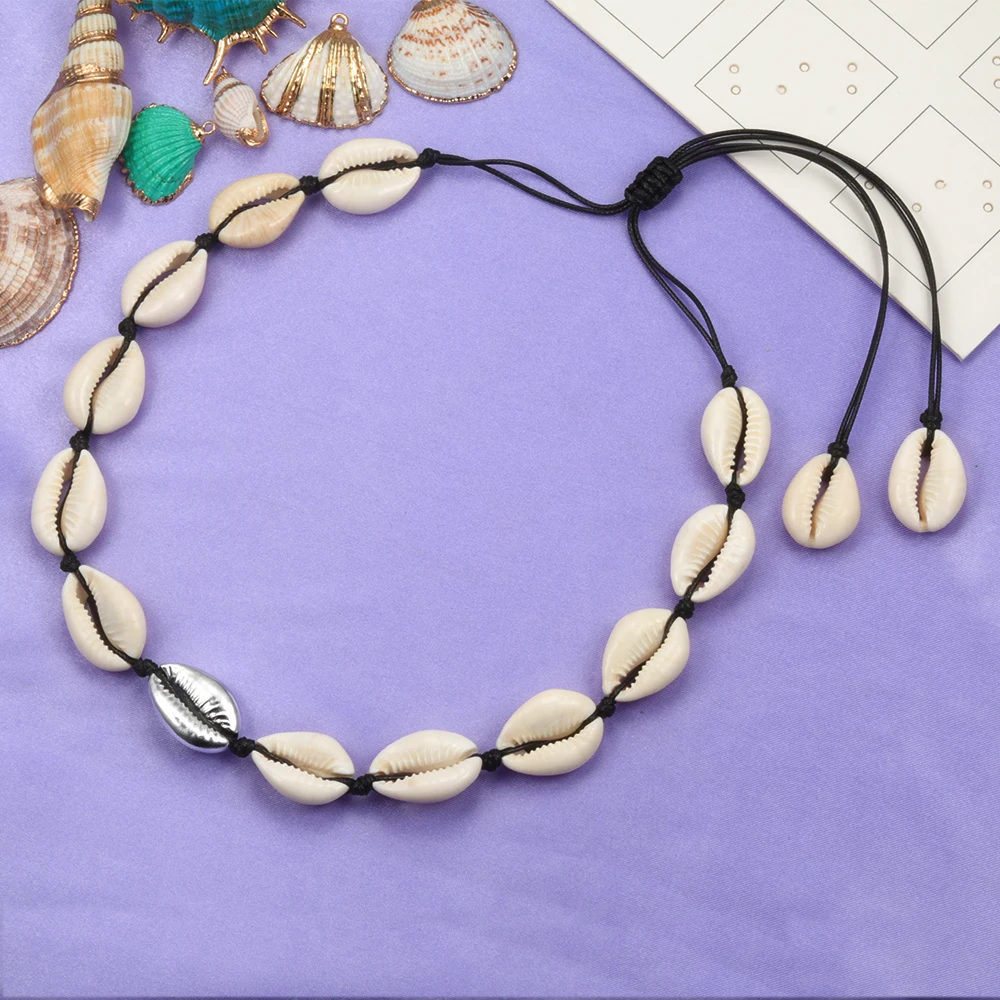 Летнее женское ожерелье с ракушками, чокер, натуральные морские ракушки, бусины, цепочка, веревка, богемное ожерелье, ювелирные изделия, пляжные подарки для девушек, регулируемые