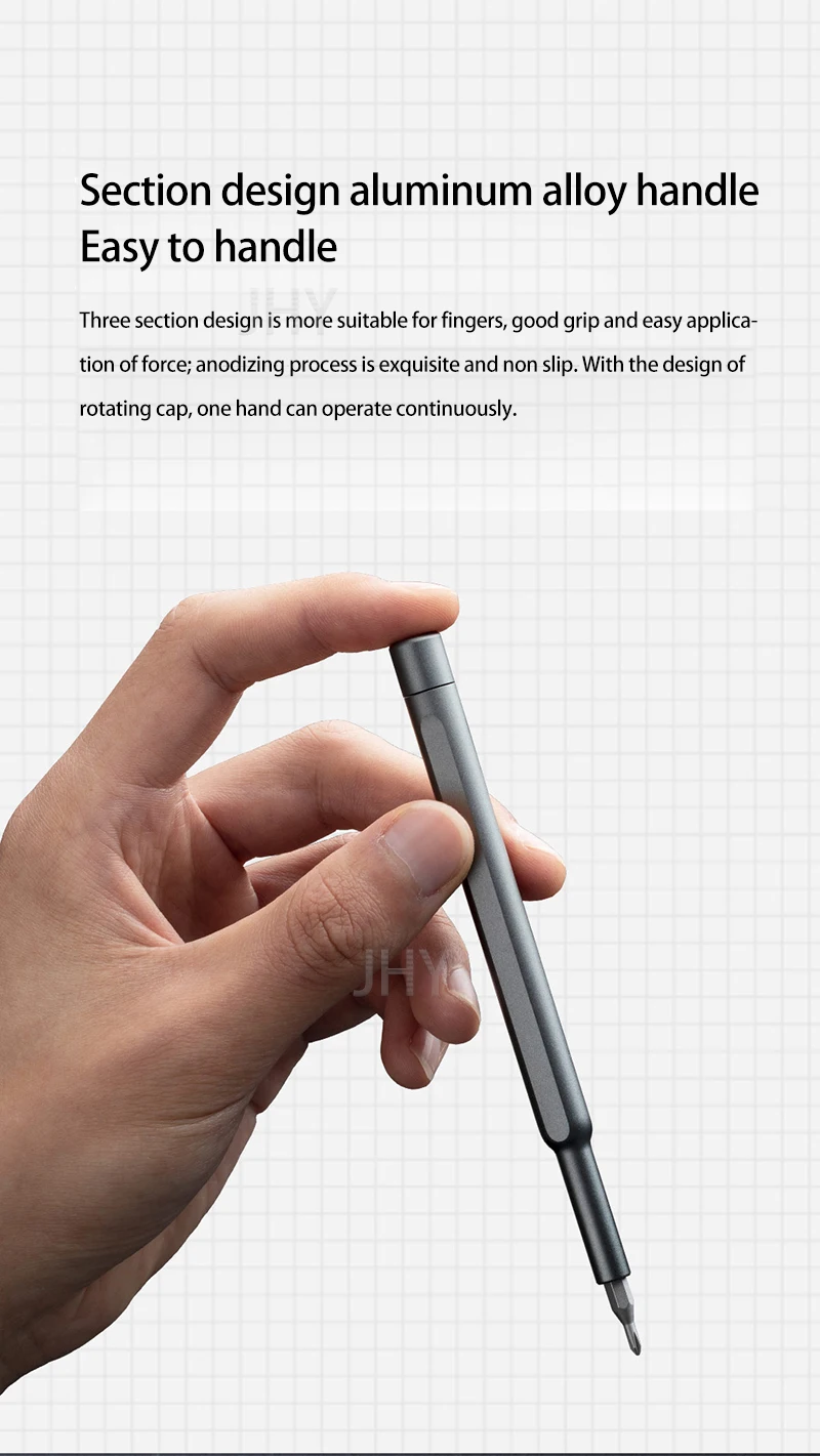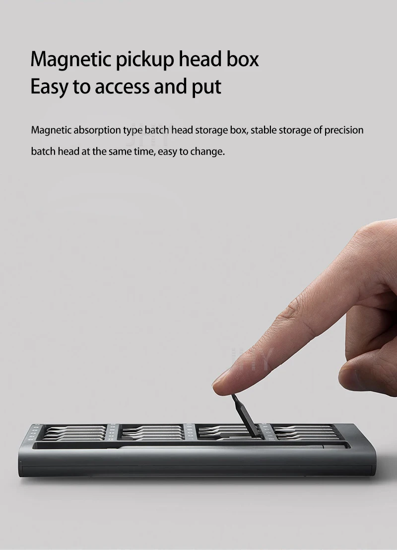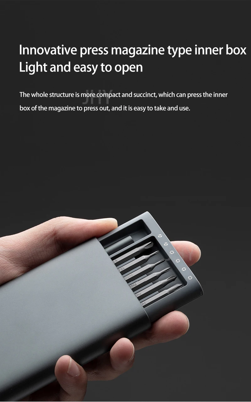Изысканный и минималистичный, чтобы удовлетворить большинство ежедневных потребностей24 точные головки партииУдобная ручка-держательКорпус из алюминиевого сплаваМагнитная головка для хранения
