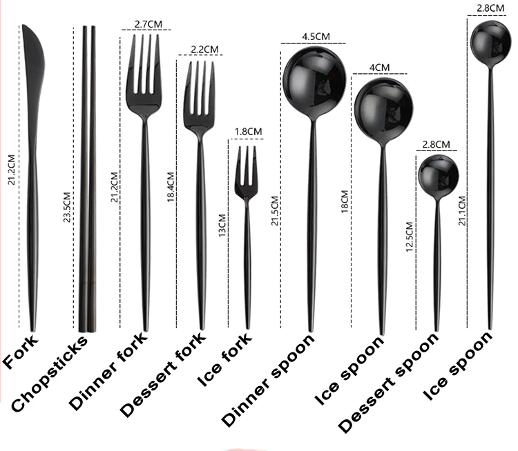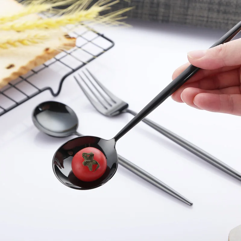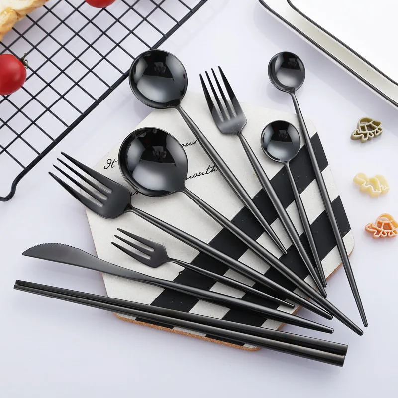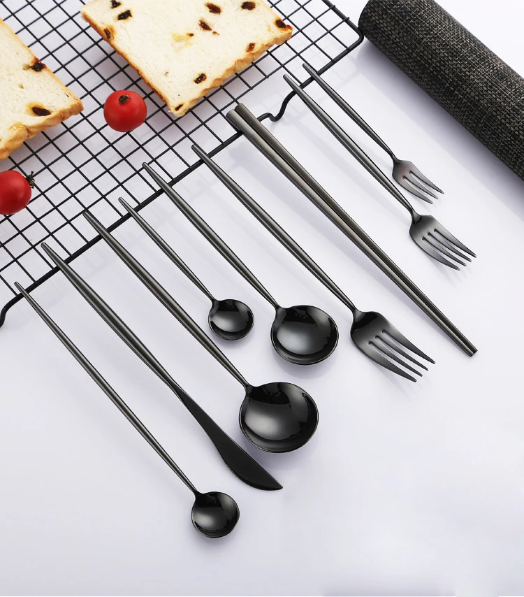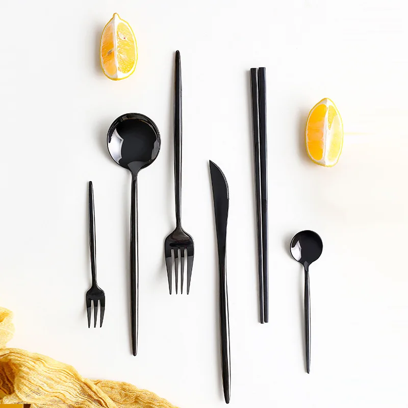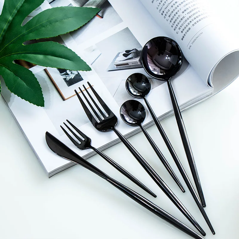 Набор столовых приборов из нержавеющей стали с черным зеркалом, сто...