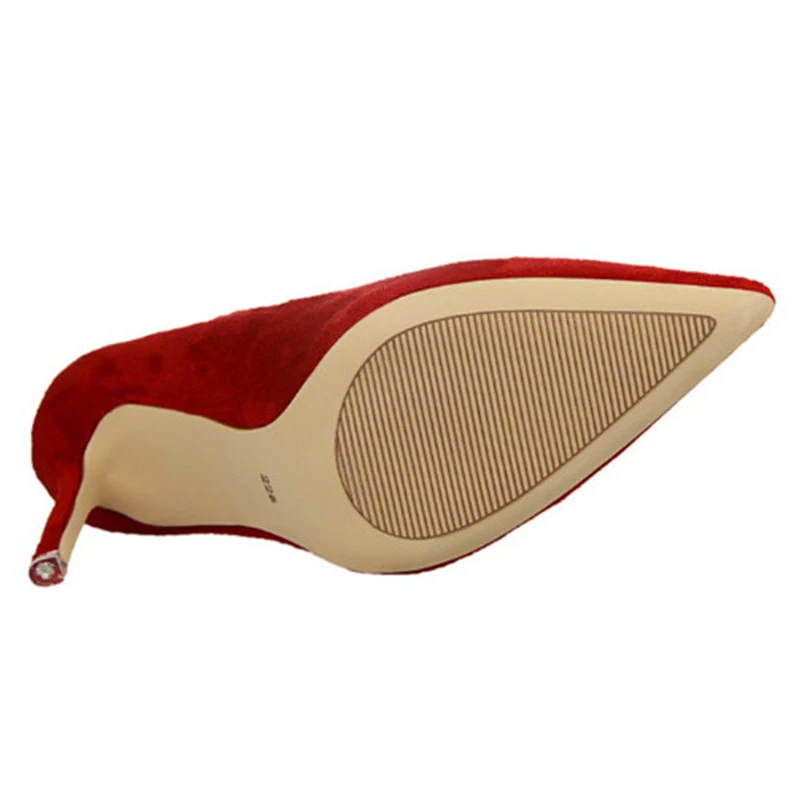 Женские офисные туфли с острым носком, однотонные туфли из флока на высоком каблуке, 9 цветов, новинка 2021