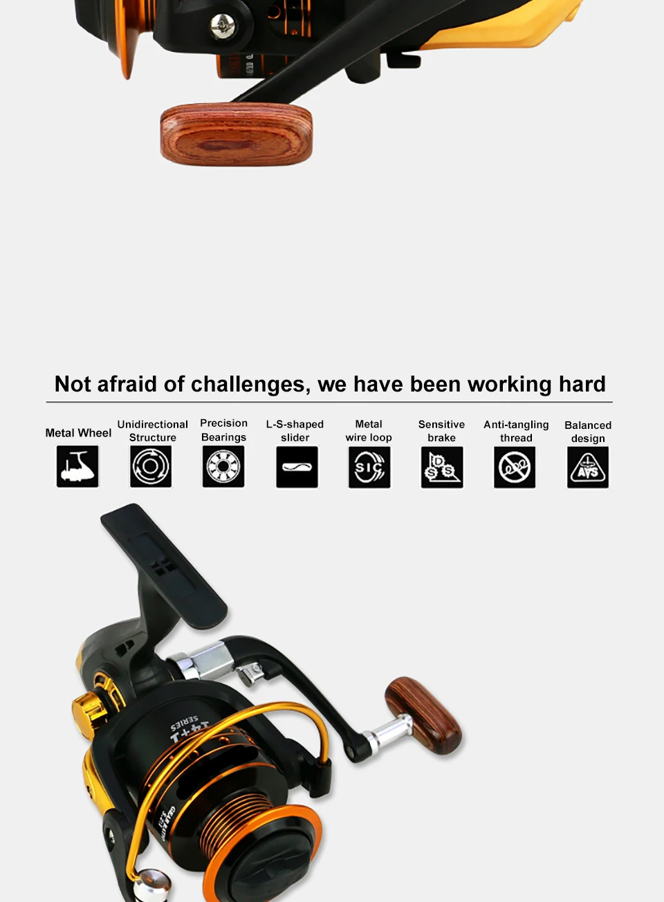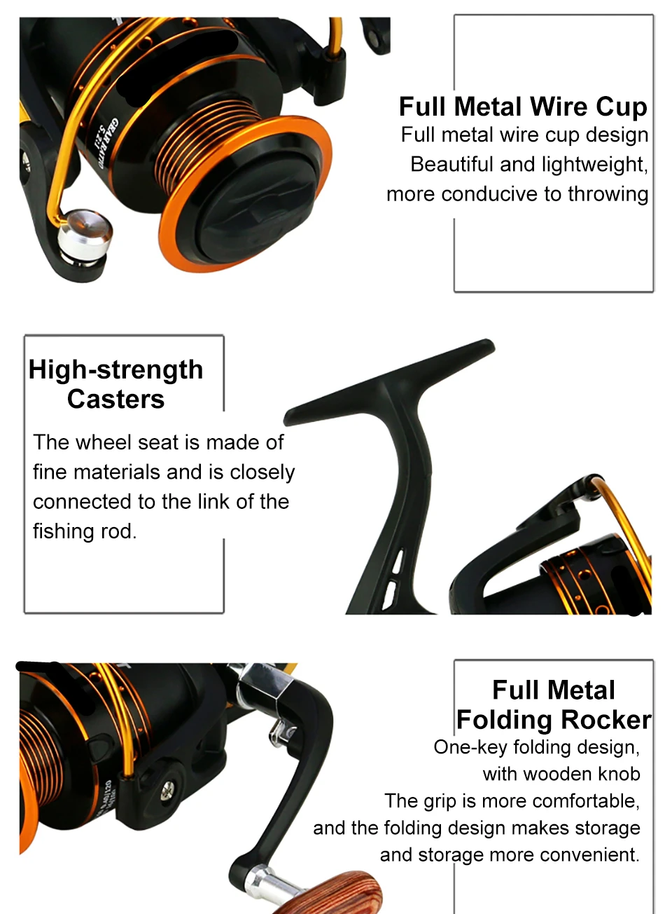 Изделие: металлическая спиннинговая Рыболовная катушка (подходит для левой и правой руки)Материал: изготовлено из металлической чашки + цельнометаллическое складное коромысло с левой/правой ручкой, кабриолет + высокопрочный пластиковый корпус + Японская пружина органа + металлический звучащий элемент + эксклюзивный механизм литья + медный стержень передачи + прочная Шестерня из цинкового сплава