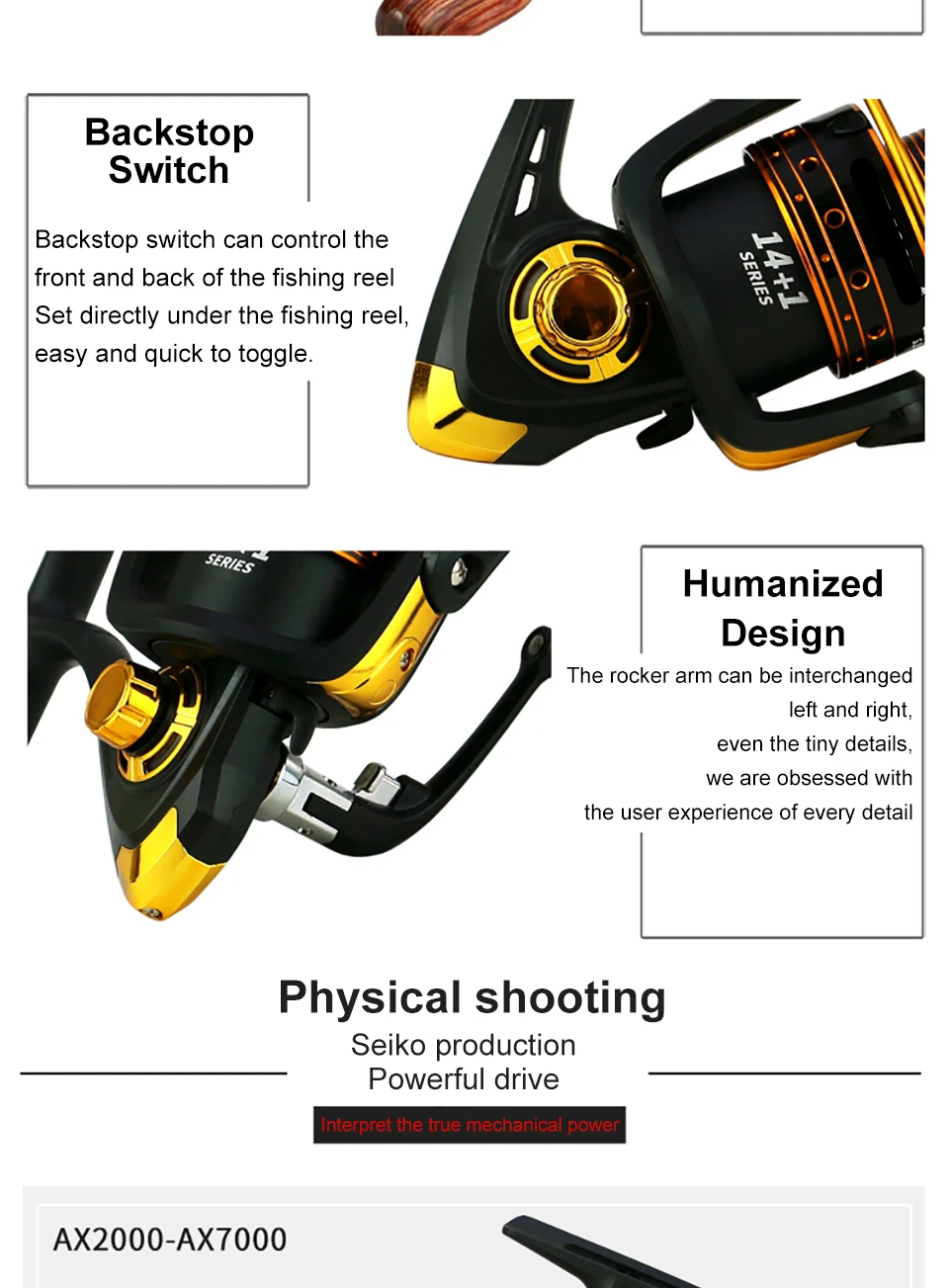 Рыболовная катушка, 12 + 1 подшипников, серия 500-9000, металлическая катушка, спиннинговая катушка, Рыболовная катушка для правого и левого спиннинга, катушка для рыбалки со скалы