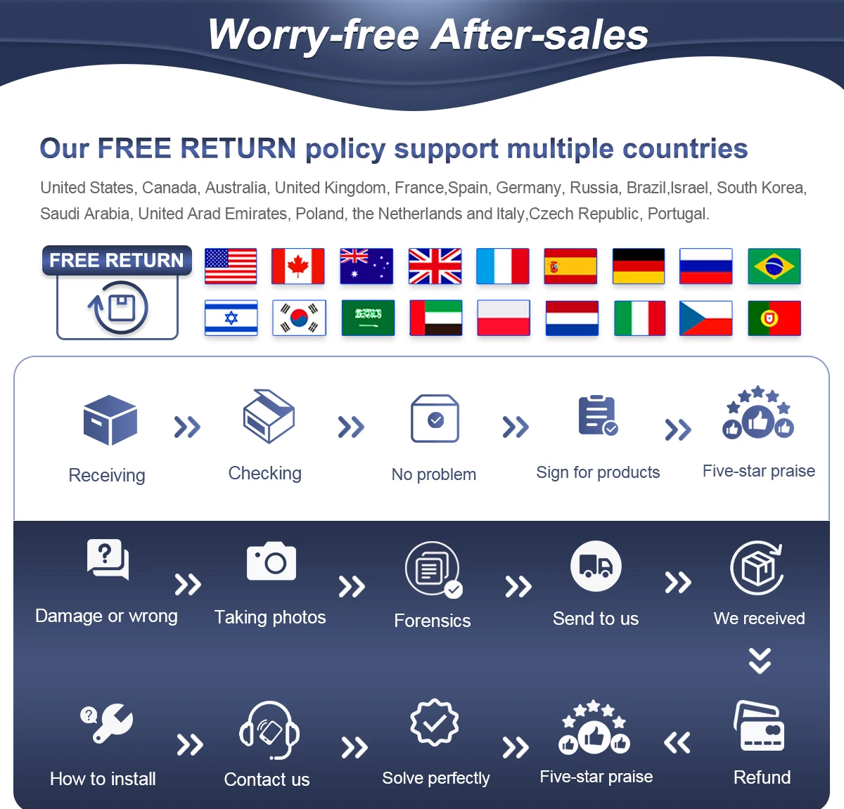 1. Какие автомобили совместимы, как правило, указано на странице листинга продукта. Вам также рекомендуется отправить нам фотографию для подтверждения совместимости.2. У нас есть сильная команда послепродажного обслуживания, которая может обеспечить бесплатную техническую поддержку через Facetime3. Установка без потерь, гнездо для стыковки, не нужно ломать линию