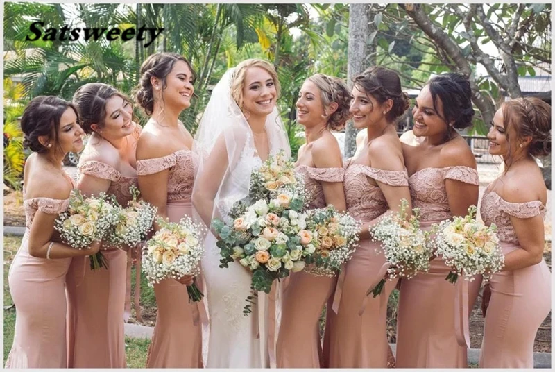 Платье подружки невесты с юбкой-годе, кружевное вечернее платье до пола с открытыми плечами, розового цвета, для сада, страны, свадьбы, гостей, индивидуальный пошив