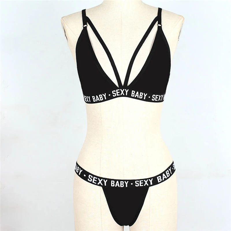 Сексуальное нижнее белье с надписью, кружевной женский купальник би...