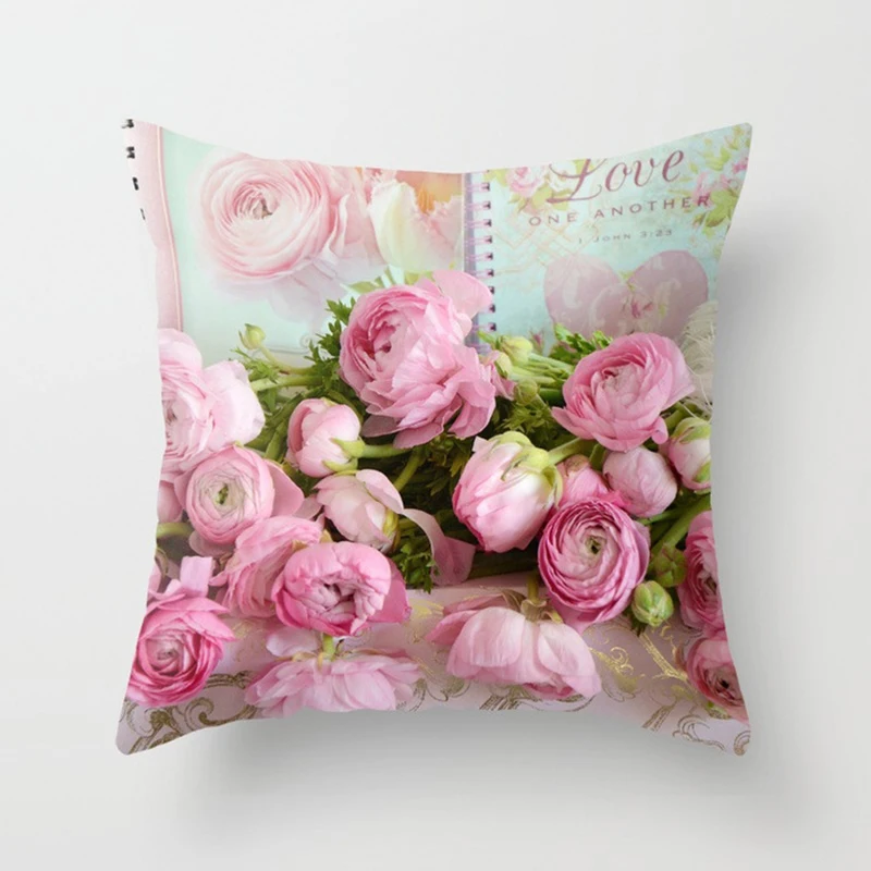Розовые цветы 45*45 см наволочка для подушки Средиземноморский скандинавский стиль украшение для дома подушка для дивана-кровати чехол для подушки для автомобиля