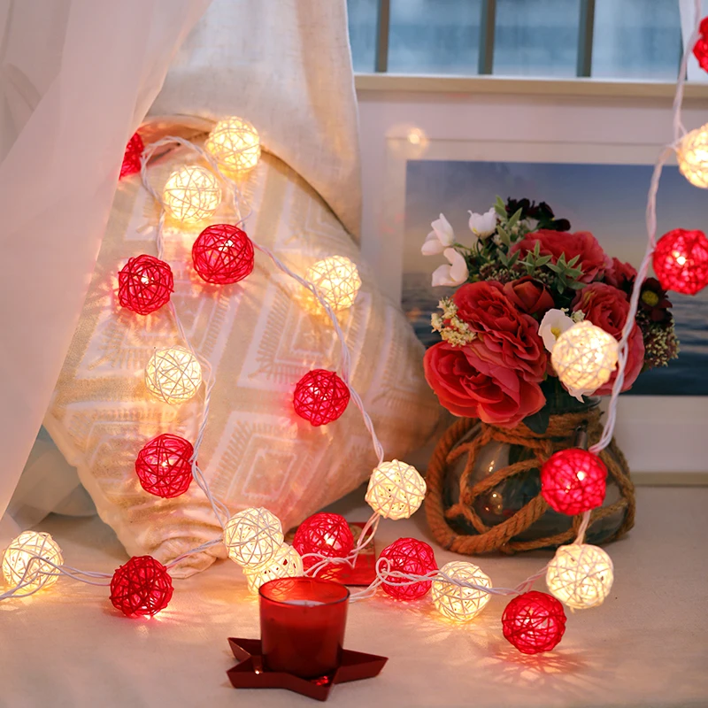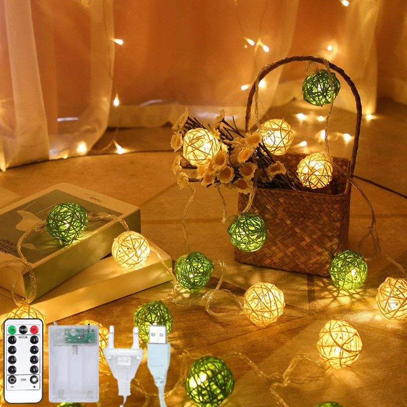 Гирлянда из ротанговых шариков, светодиодная Ночная лампа, сказочный патио, Рождество, 2022, новогодний декор, свадьба, спальня, для дома и вечерние НКИ