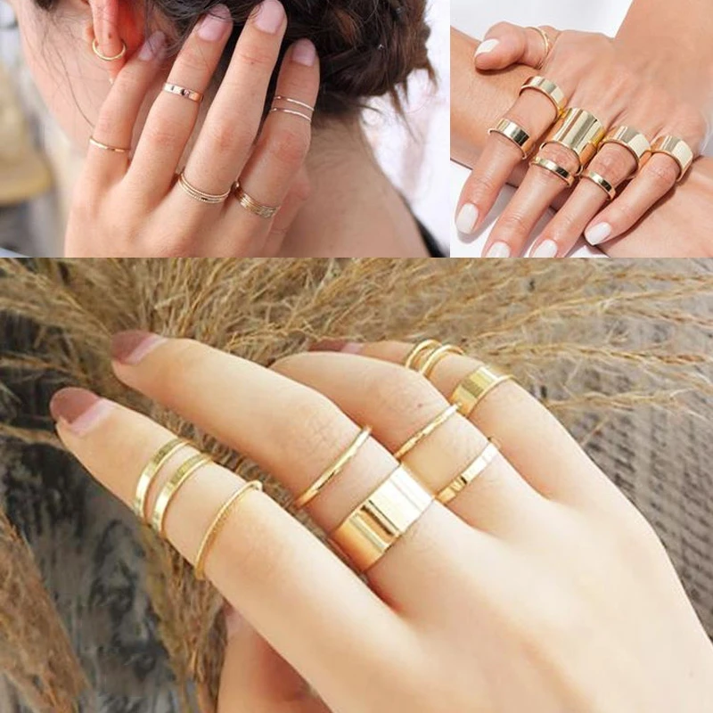 Набор минималистичных колец для укладки, шикарные кольца для женщин, антиаллергенные металлические обручальные кольца из нержавеющей стали, ювелирные изделия