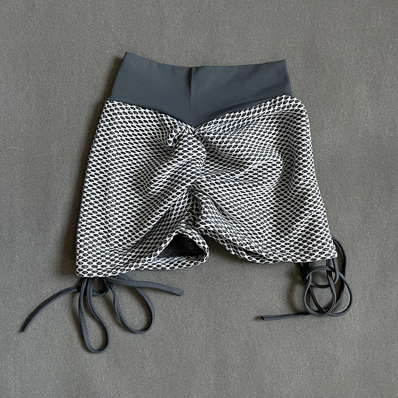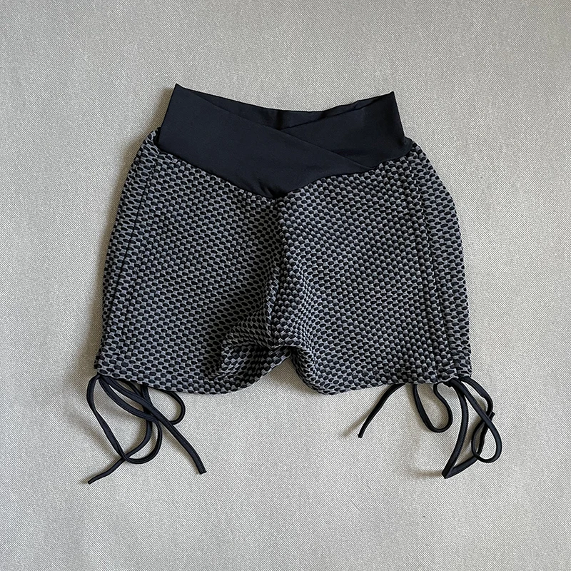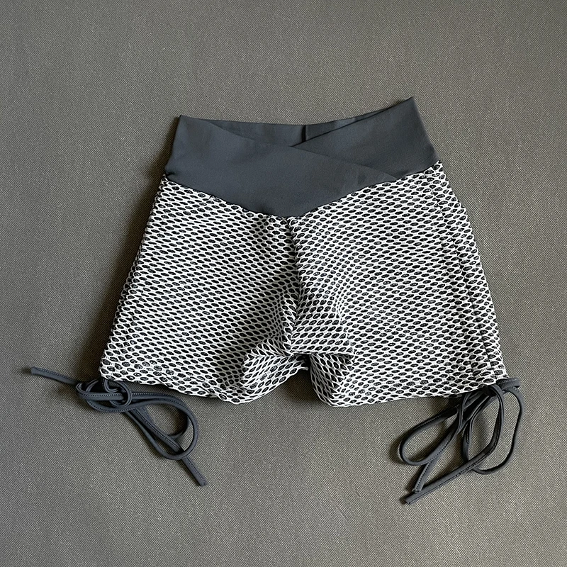 Женские бесшовные шорты для йоги, с высокой талией, с эффектом пуш-ап, спортивные Леггинсы, с узором в виде сот, на шнурке, тренировочные шорты для бега