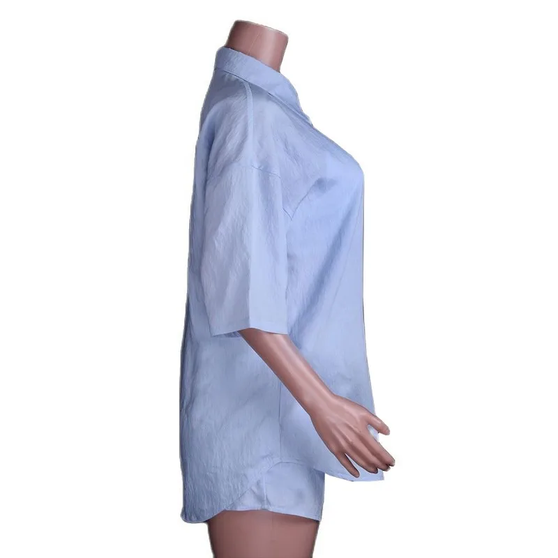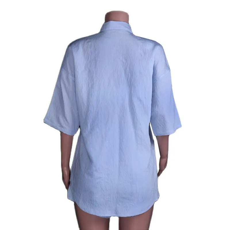 Женский костюм-двойка с шортами на шнурке Wixra, однотонный повседневный костюм, лето рубашки с отложным воротником со стойкой
