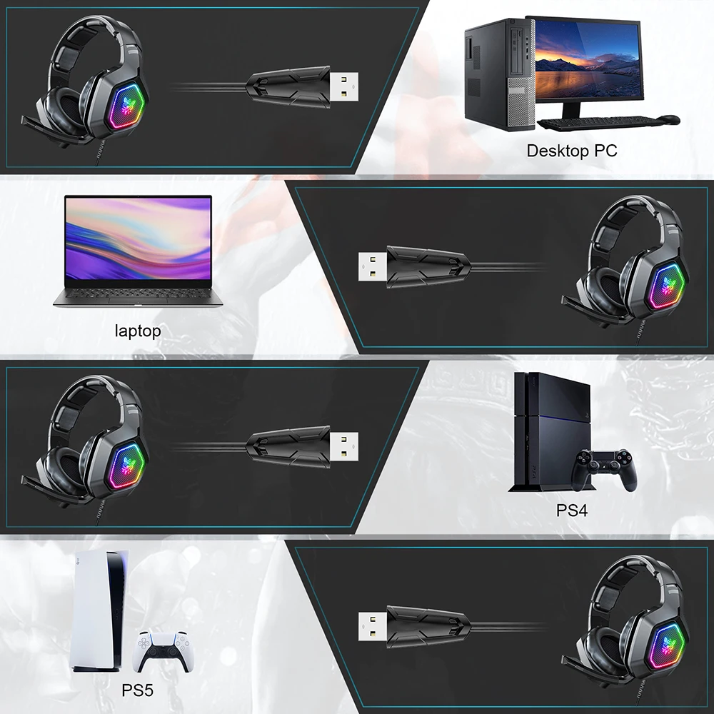 ONIKUMA 7,1 стерео звук розовые Игровые наушники для девочек ПК стерео игровая гарнитура с микрофоном и светодиодный светильник для ноутбука/ПК/PS4/PS5