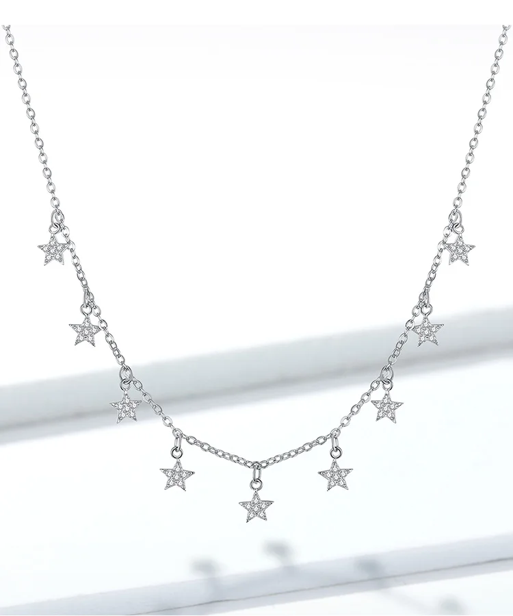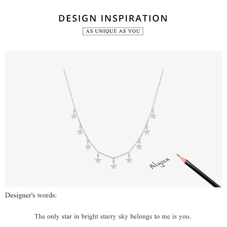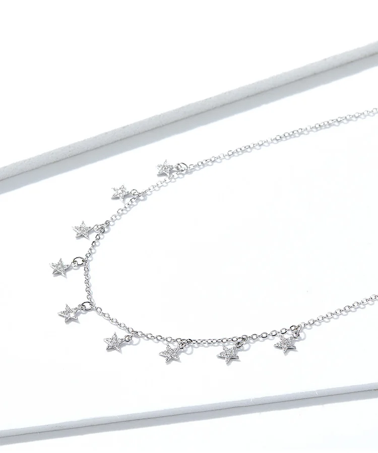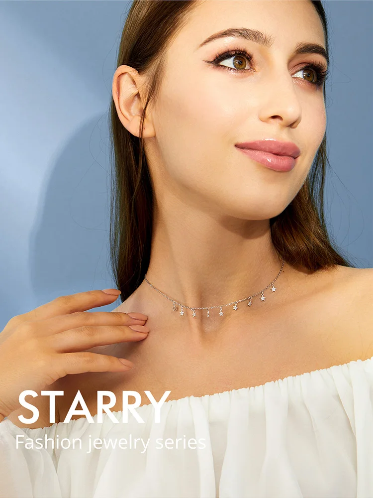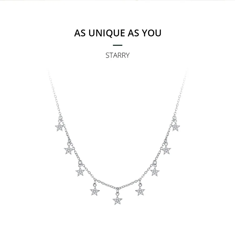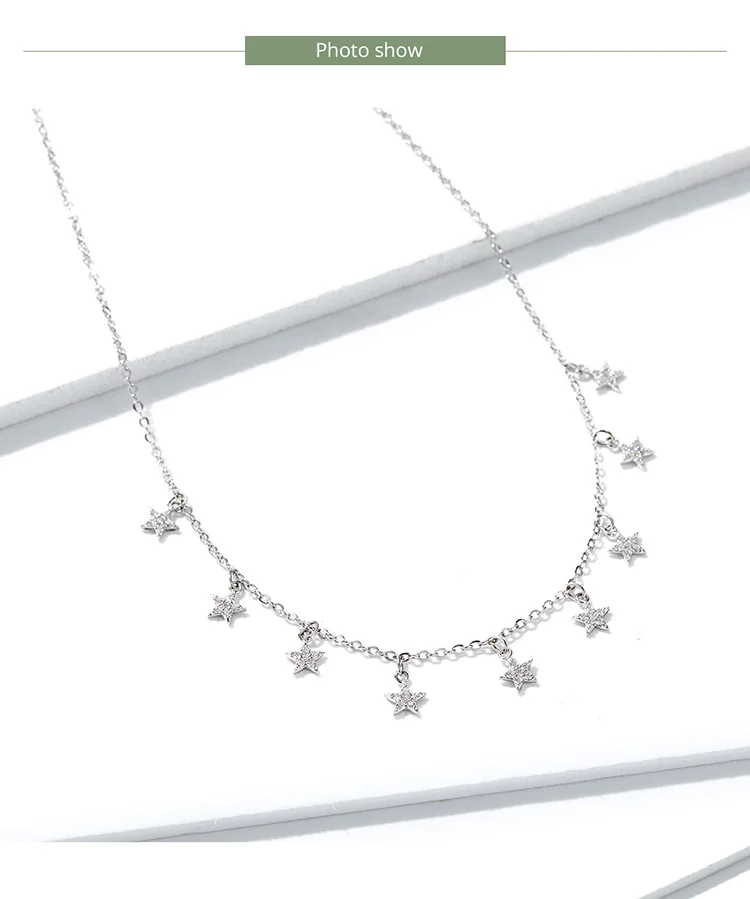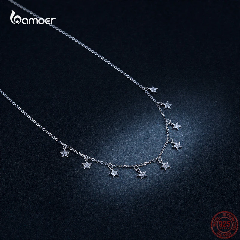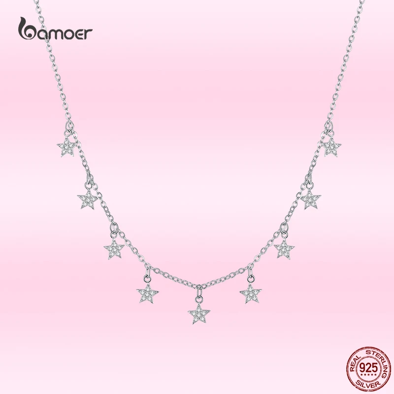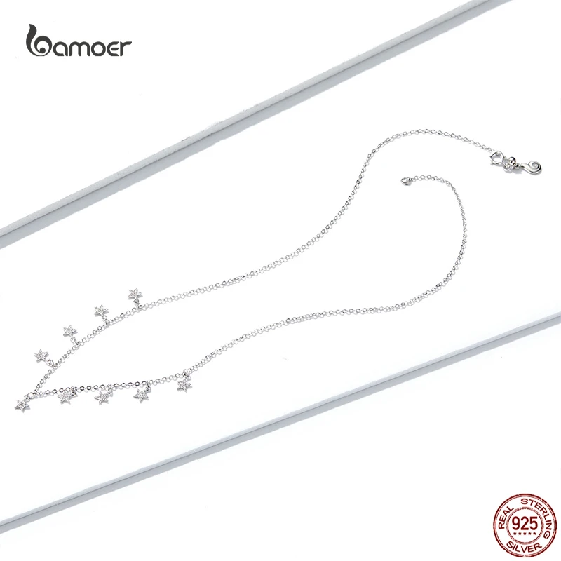 Женское колье-чокер Bamoer из стерлингового серебра 925 пробы со звездами и металлической цепочкой, элегантное свадебное ювелирное изделие, подарок GAN116