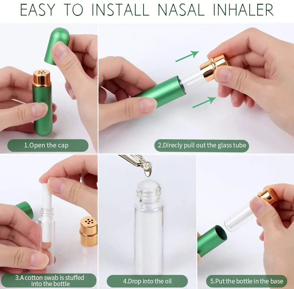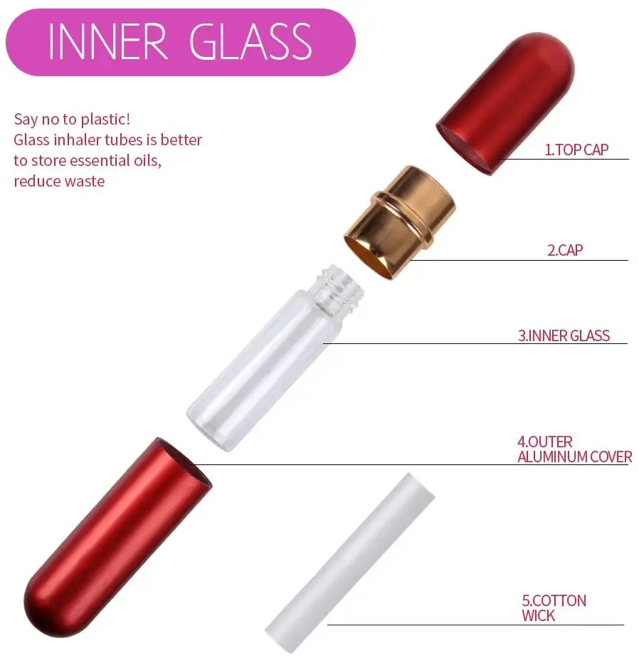Портативная ароматерапия, 5 упаковок, пустые искусственные зеркальные ингаляторы, палочки с хлопковыми фитилями