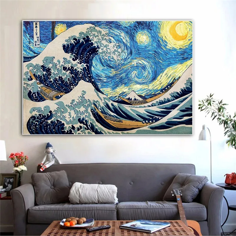 Картины на холсте Великая волна от канагавы, художественные плакаты и принты на стене, классические знаменитые морские пейзажи, художественные картины, Куадрос