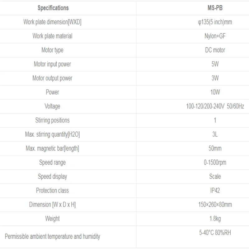 Work plate dimension[WXD]135(5 inch)mm