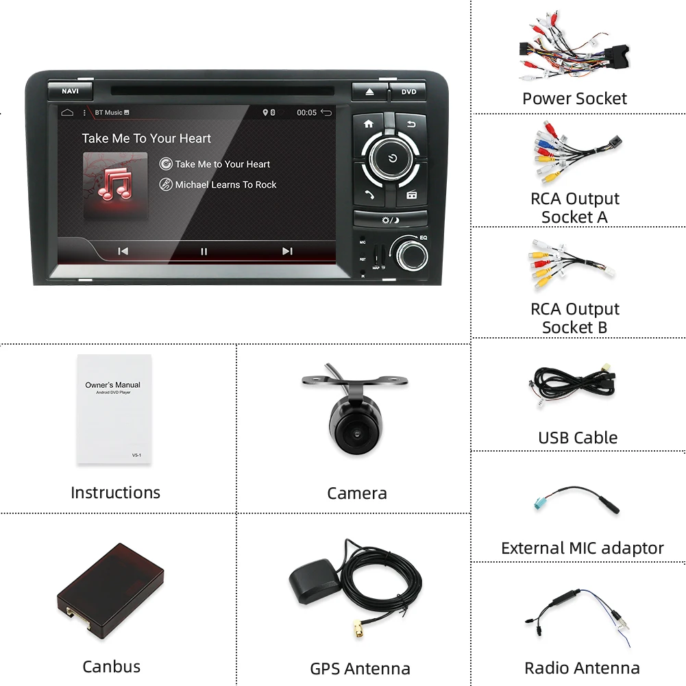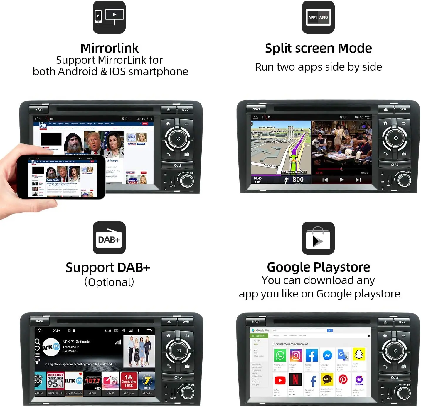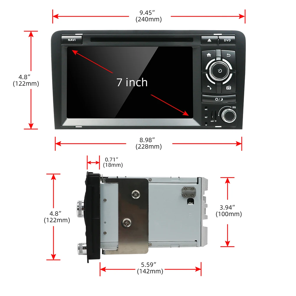 Car автомобильное радио Совместимо с Audi A3 (2003-2012) и т. д. пожалуйста, проверьте размеры перед покупкой. Если вы не уверены, пожалуйста, свяжитесь с нами
