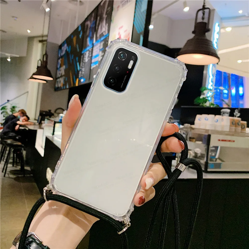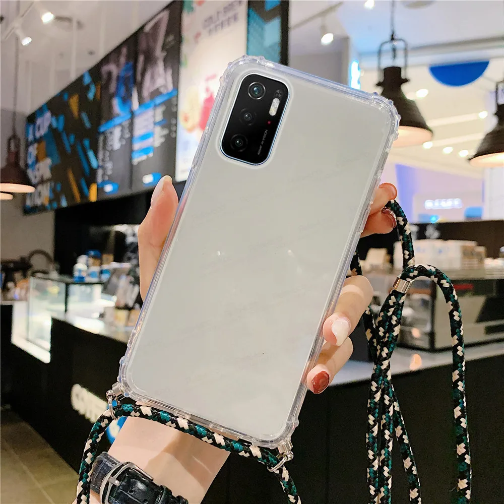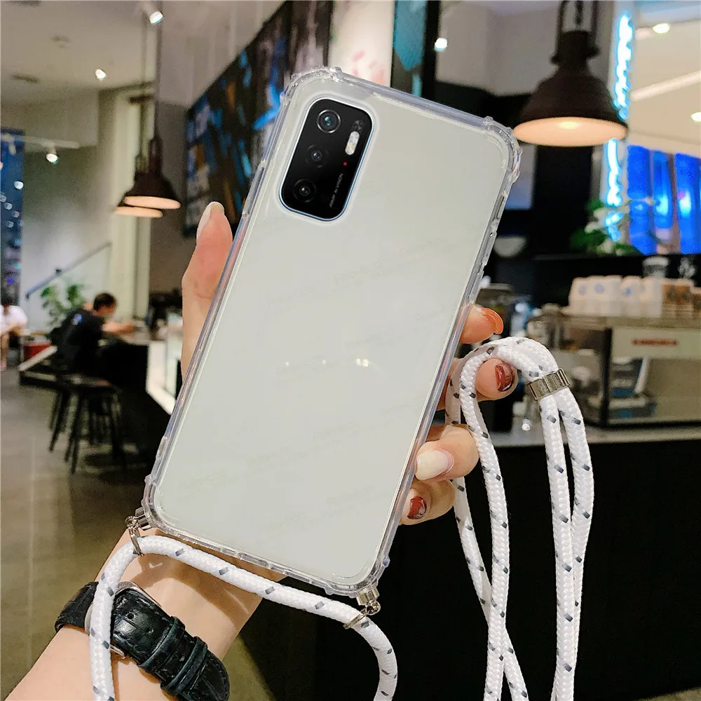 Прозрачный противоударный чехол для Xiaomi Poco M3 Pro, чехол для Xiomi PocoM3 Pocophone M 3 M3pro, ожерелье, шнур, ремешок с веревкой