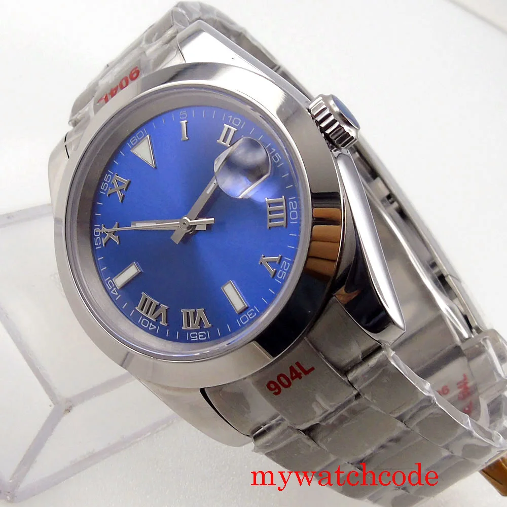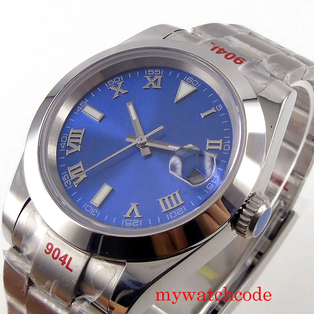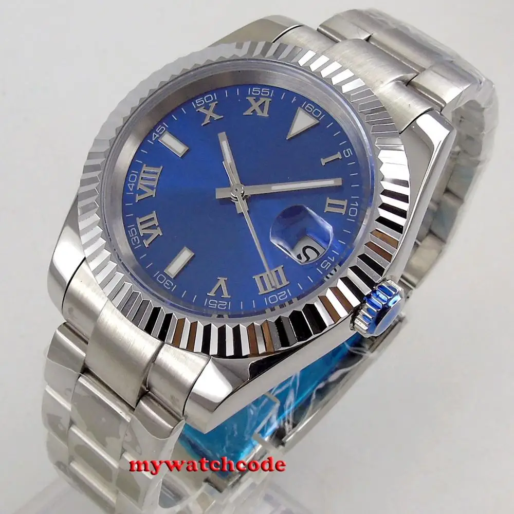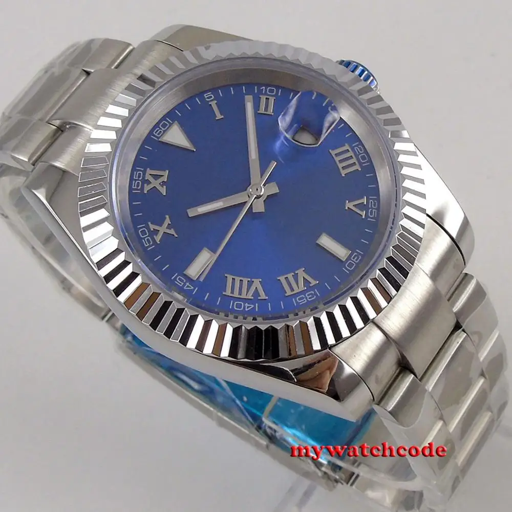Топ 36 мм Bliger бренд автоматические мужские часы с сапфировым стеклом MIYOTA 8215 движение черныйсиний циферблат полированный Beze Oyster ремень