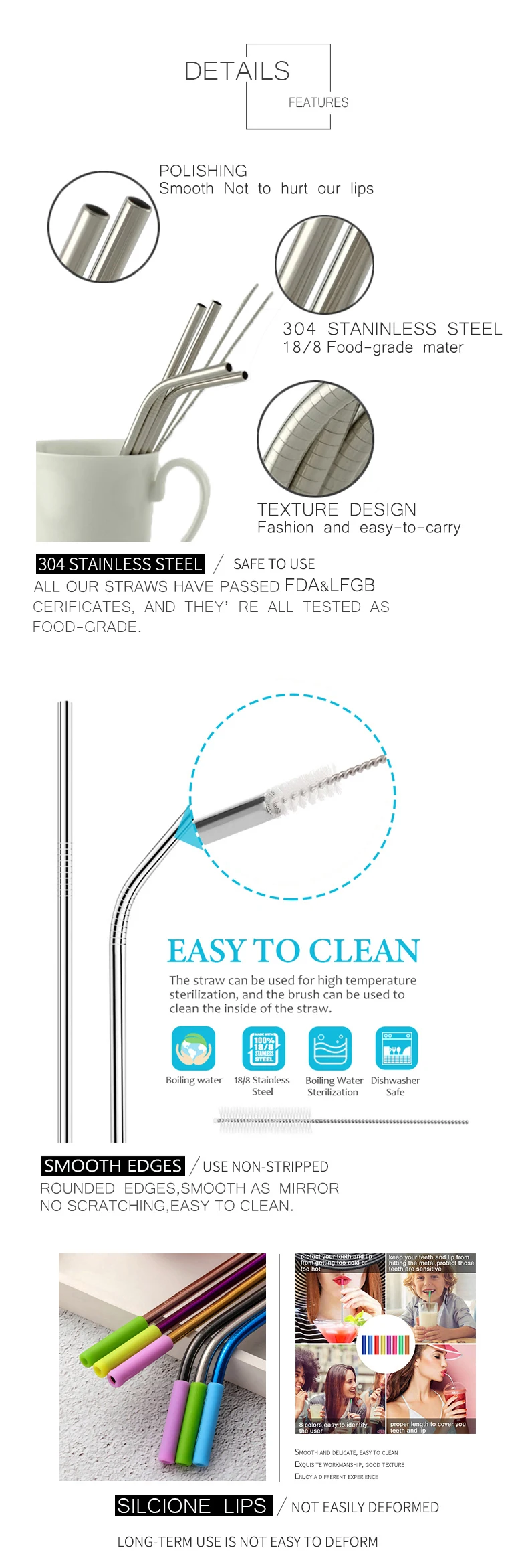 Питьевая солома из нержавеющей стали 304, Нетоксичная и безвкусная, коррозионная стойкость, отсутствие ржавчины, отсутствие металлического привкуса, здоровье и безопасность. Подходит для напитков, чая, сока и т. д. посудомоечная машина безопасная, многоразовая и экологически чистая.