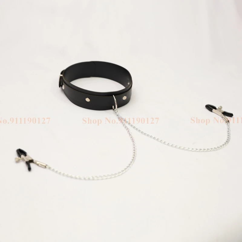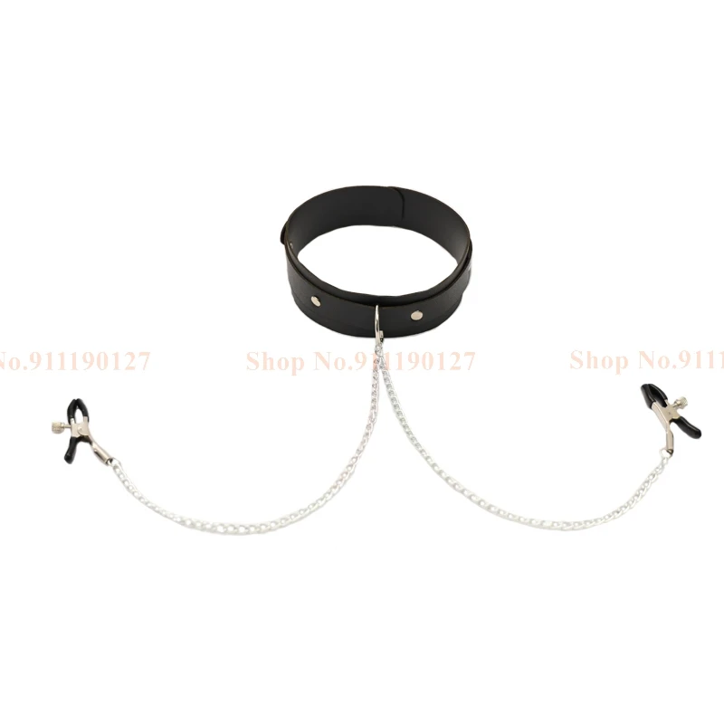 Ошейник-чокер из искусственной кожи с зажимом для сосков, цепочка с...