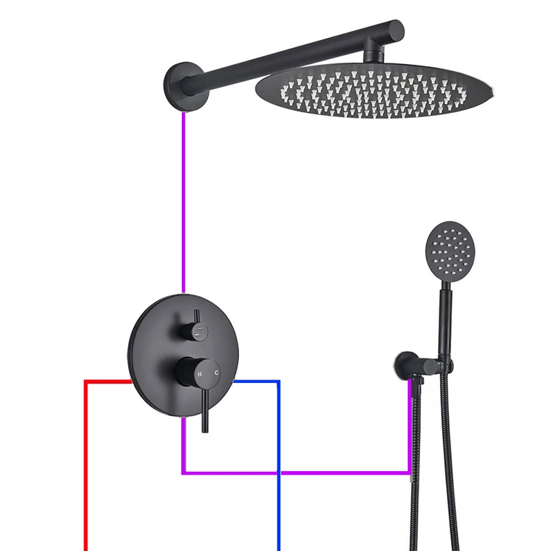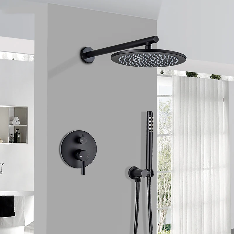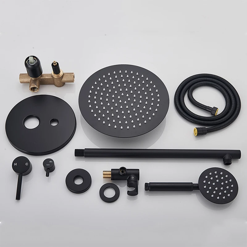 Смеситель для душа Nekjcag, латунный круглый матовый черный, 2 функции, набор для горячей и холодной воды, настенная Скрытая Душевая система