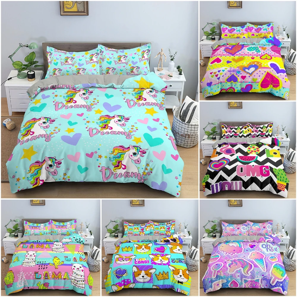 Мультфильм постельное белье с изображением единорога; Комплект из м...