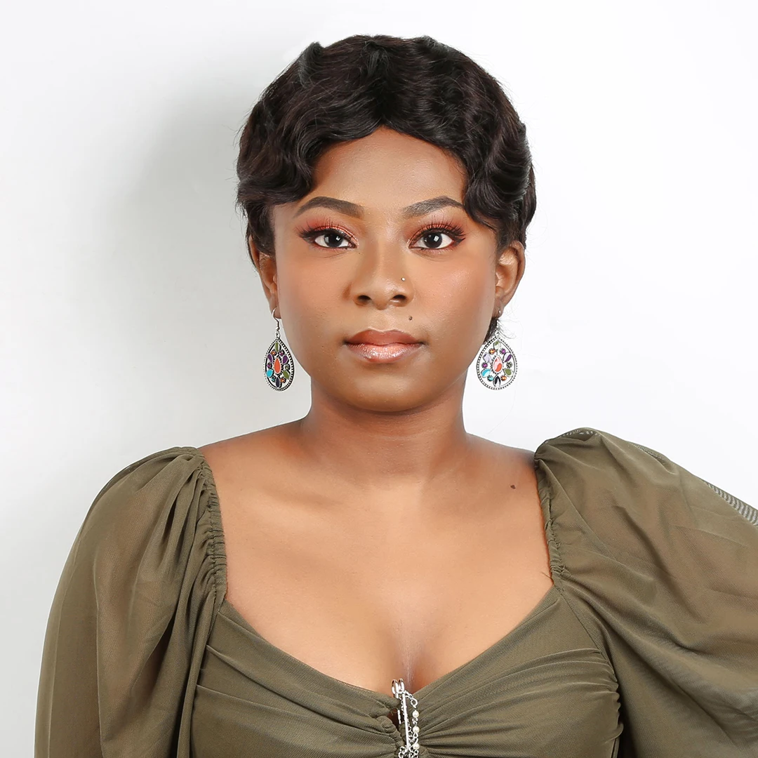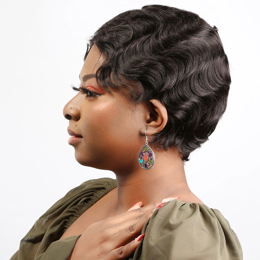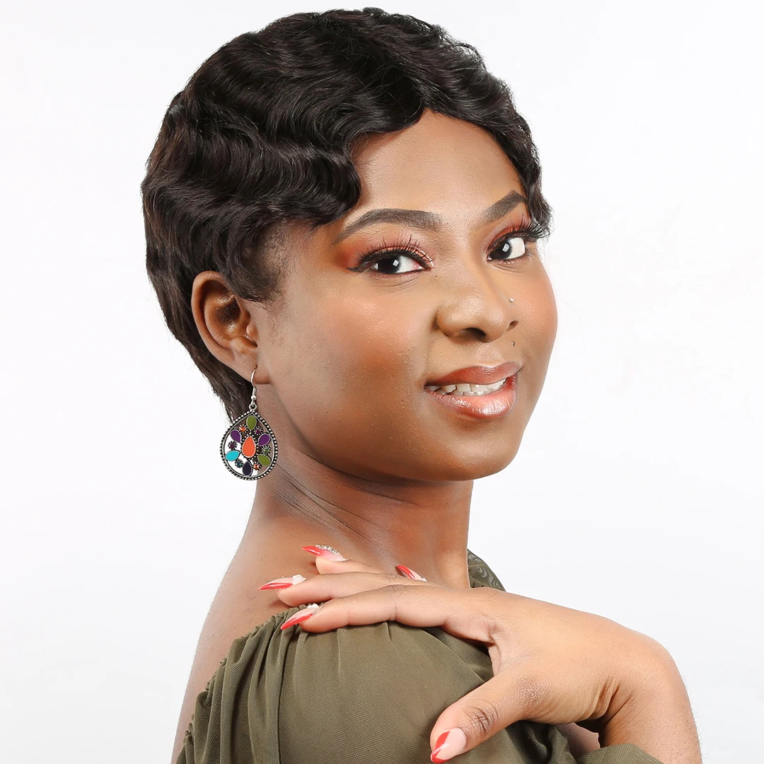 Парик фея, человеческие волосы, Короткие вьющиеся волосы, Боб, парик с волнистыми пальцами, ретро парик для женщин, полноценный парик, дешевые парики Remy из человеческих волос