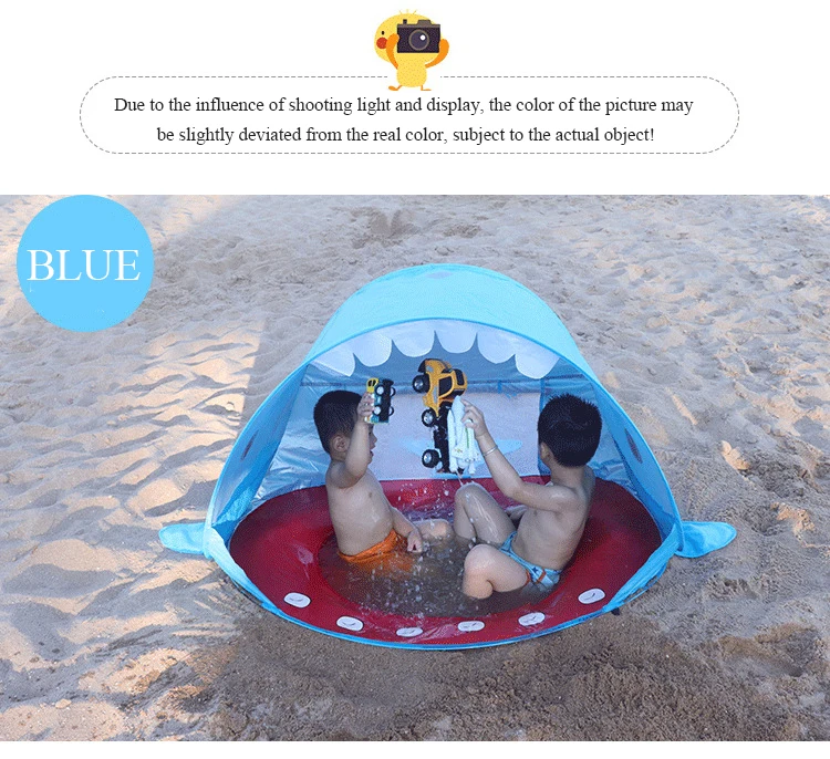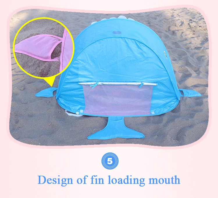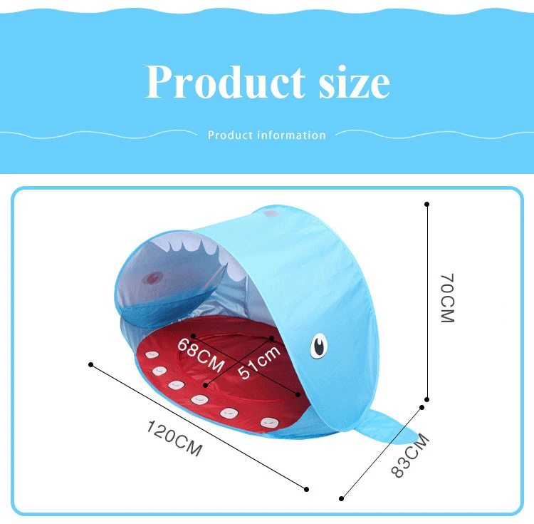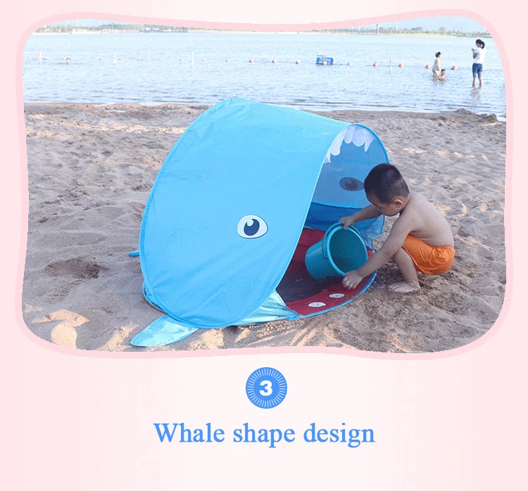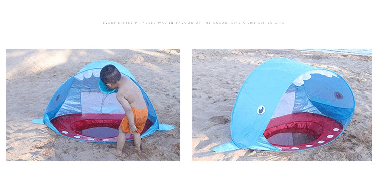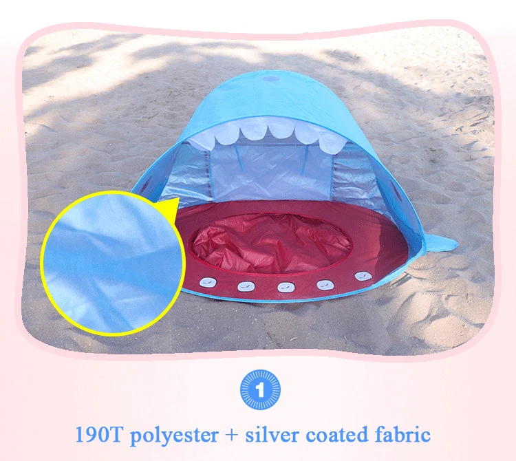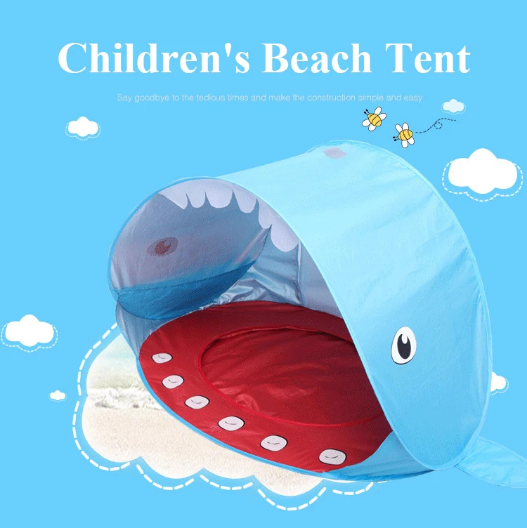 Детская Пляжная палатка Акула, мультяшный портативный водонепроницаемый тент, защита от УФ излучения, для путешествий, игровой домик с солнцезащитным козырьком