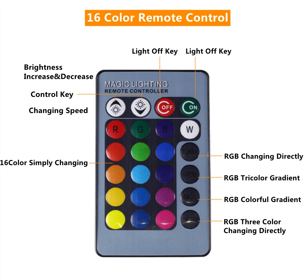 Цвет изделия: красный, зеленый, синий, желтый, зеленый, фиолетовый, белый, можно установить монохромный или градиент из семи цветов, градиент цвета