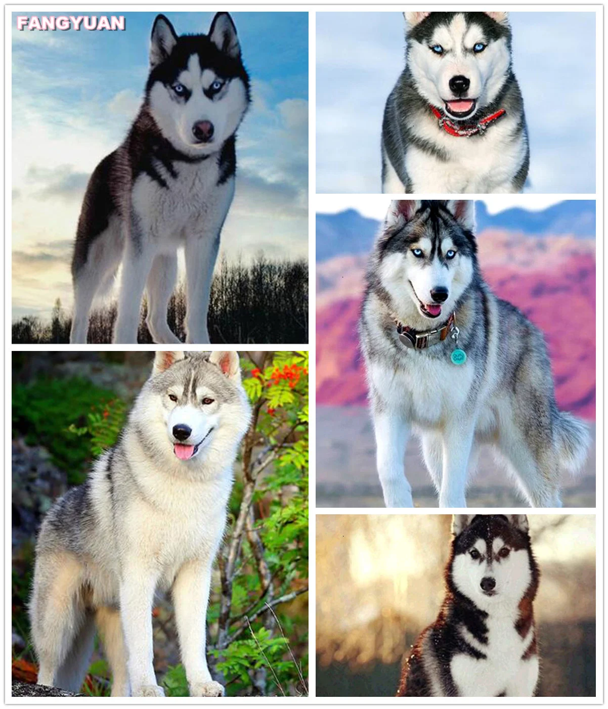 Алмазная 5D Вышивка Хаски, Набор для вышивки крестиком с изображением собаки, пейзажа, украшение для дома в подарок