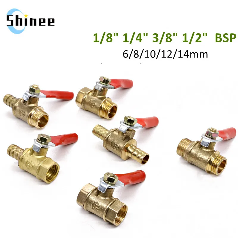 Латунная водяная масляная воздушная газовая топливная линия, шаровой клапан, фитинги для труб, пневматический соединитель, ручка контроллера 6-12 мм, хомут, встроенный