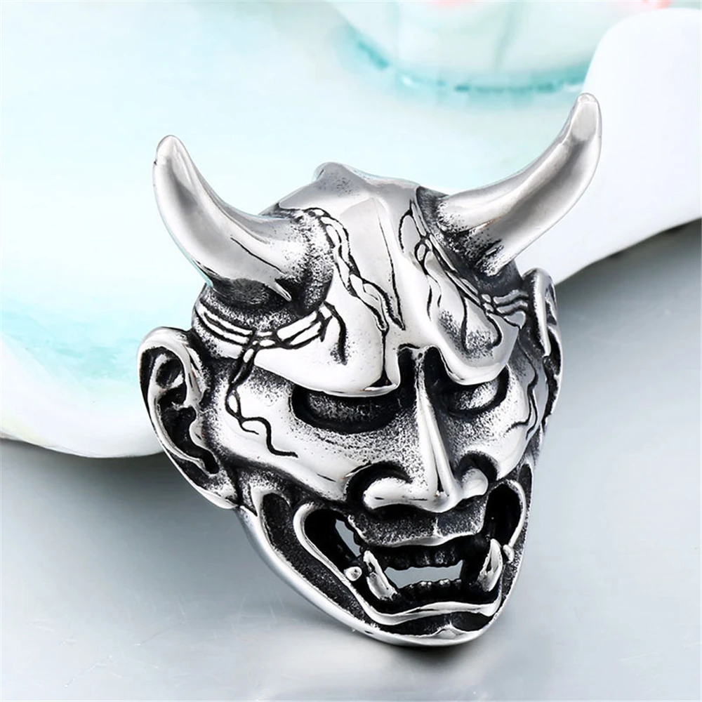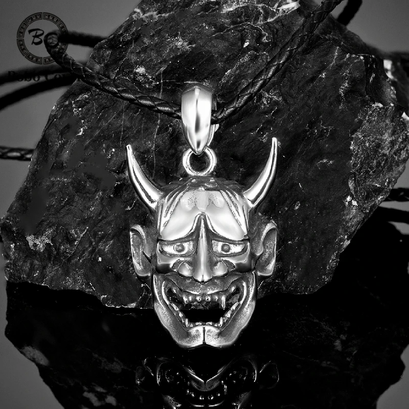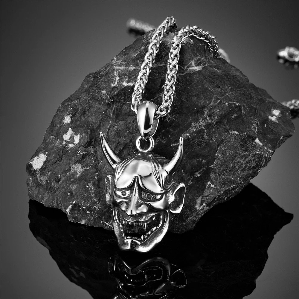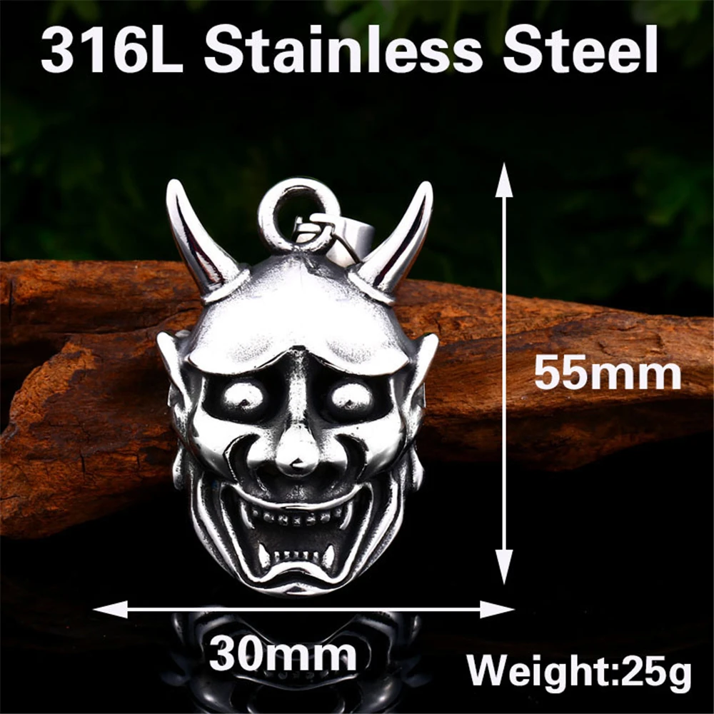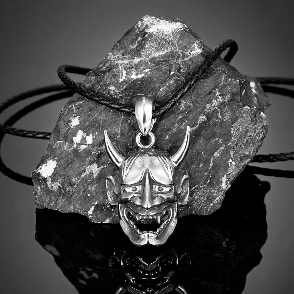 Ожерелье Oni Noh в стиле ретро с кожаной маской для мужчин и женщин, кулон из нержавеющей стали в форме монстра японской культуры, ювелирные изделия в стиле панк