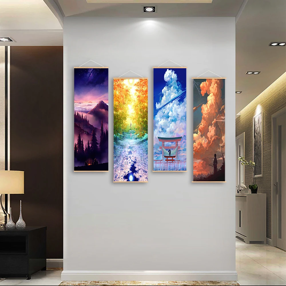 Настенное искусство, Декор, Свиток, холст, аниме, постер, облако, гора, мультфильм, Настенная картина для гостиной, домашний декор, печать на холсте