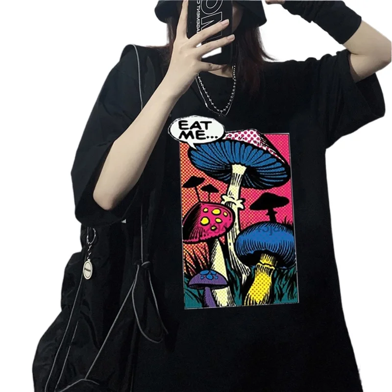 Футболка в стиле Харадзюку с ярким принтом грибов, Уличная Повседне...