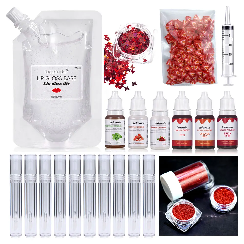 Набор для самостоятельной сборки Красного блеска для губ 100 мл базовый гель для губ масляный цвет порошок с пигментным блеском ароматизирующее масло с пипеткой тюбики, контейнер