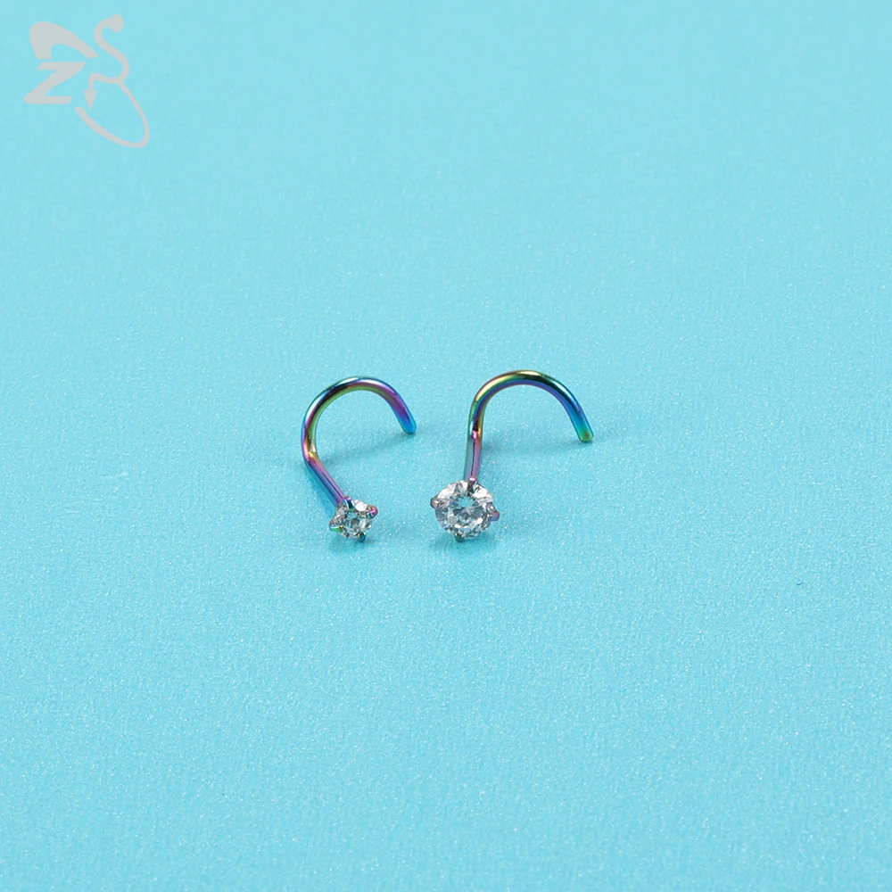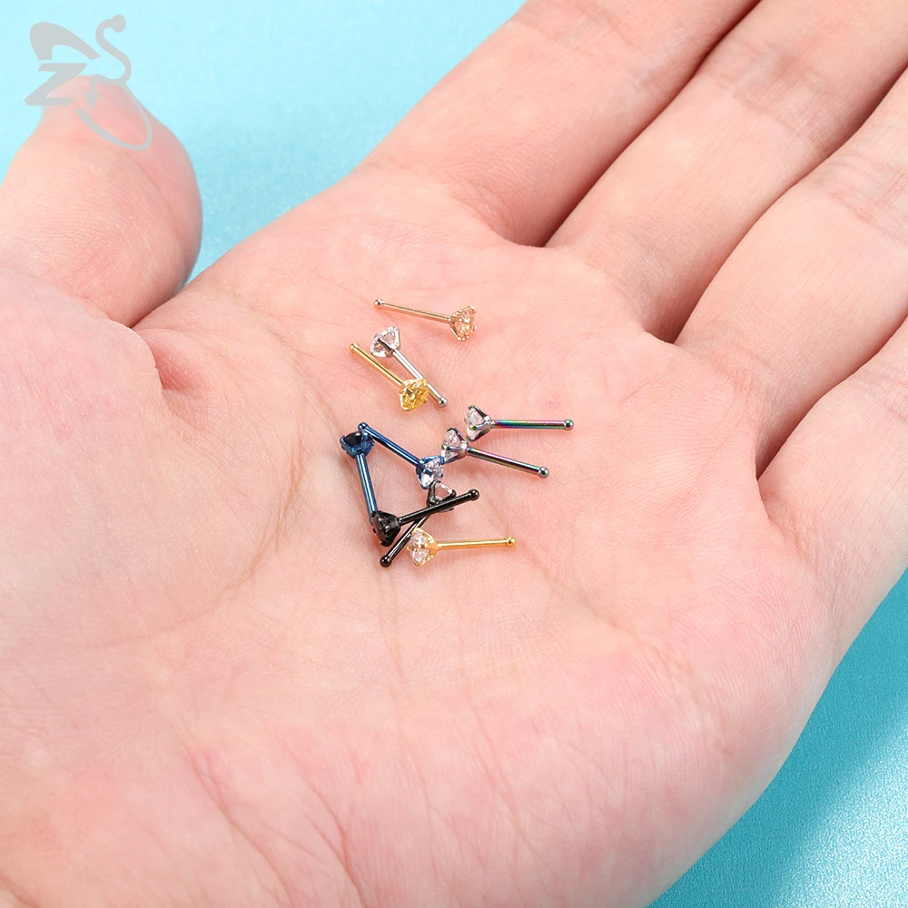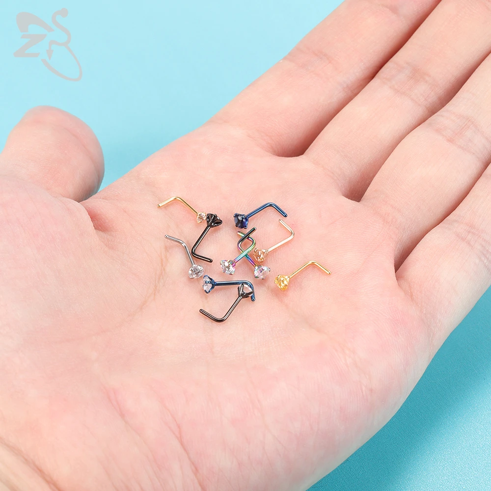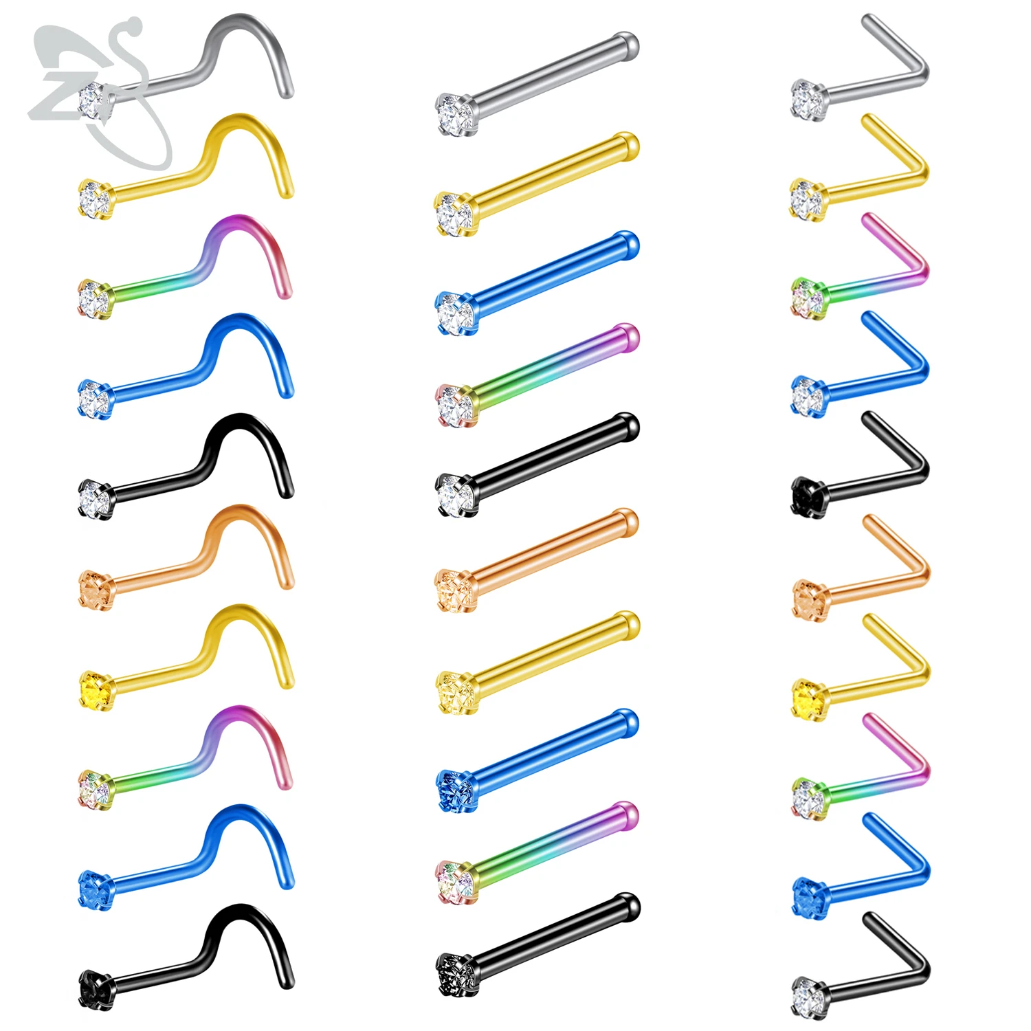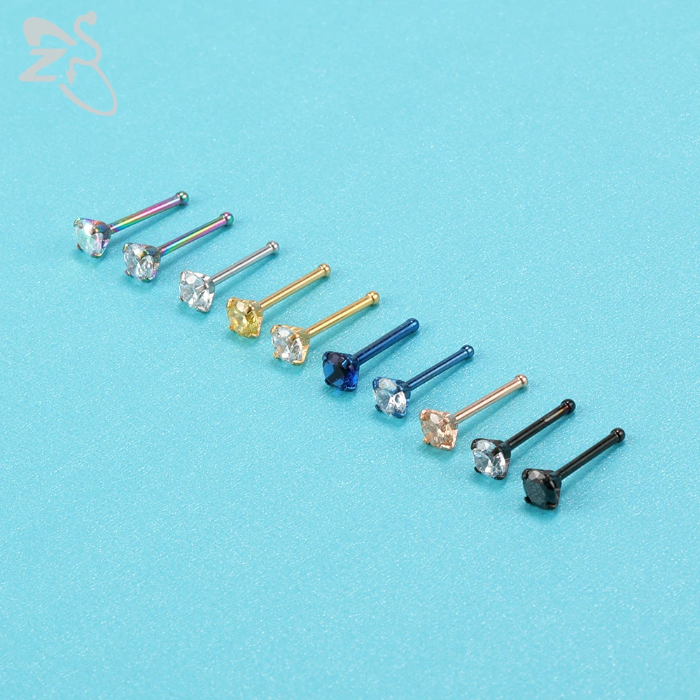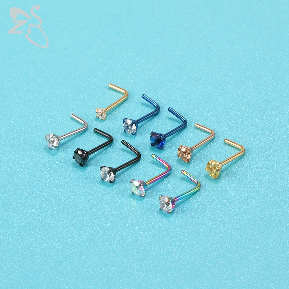 Набор гвоздиков для носа ZS, 10 шт.лот, 2-3 мм, с фианитами, для женщин и мужчин, 20 г, из нержавеющей стали, цветной L-образный пирсинг для носа