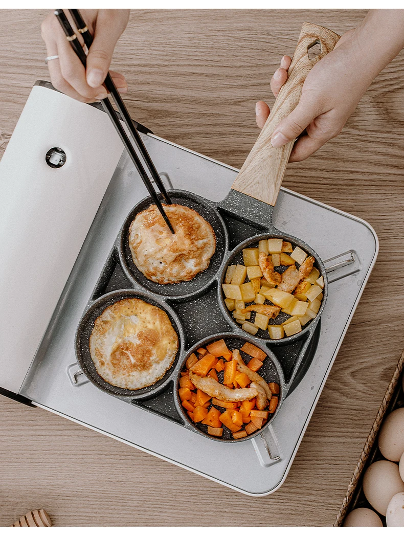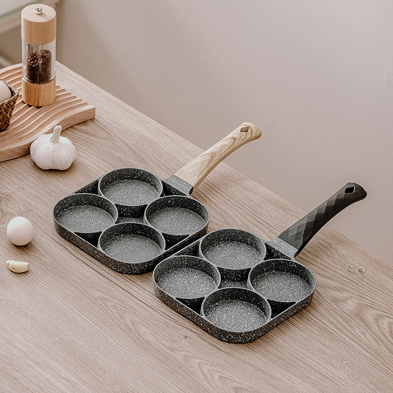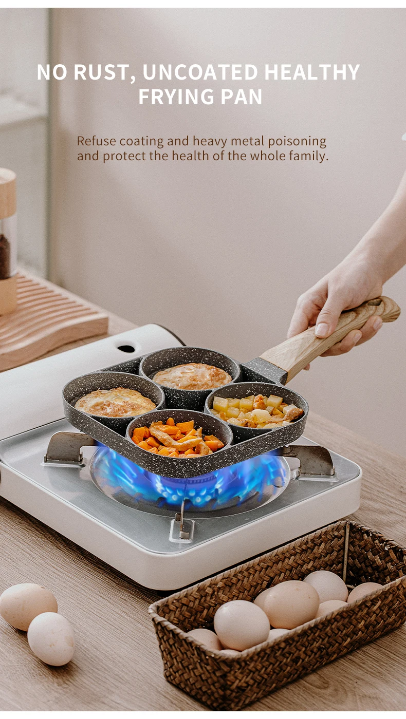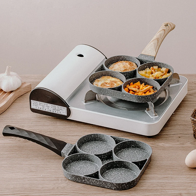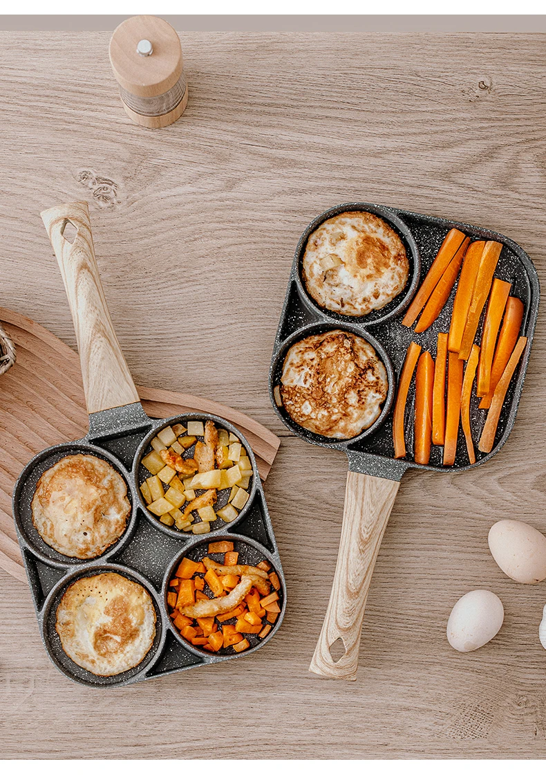 для кухни кухонные аксессуары Сковорода с четырьмя отверстиями, сковорода, утолщенная модель, антипригарная сковорода для яиц, блинов, ветчины, блинов, деревянная ручка, сковорода, сковорода для завтрака